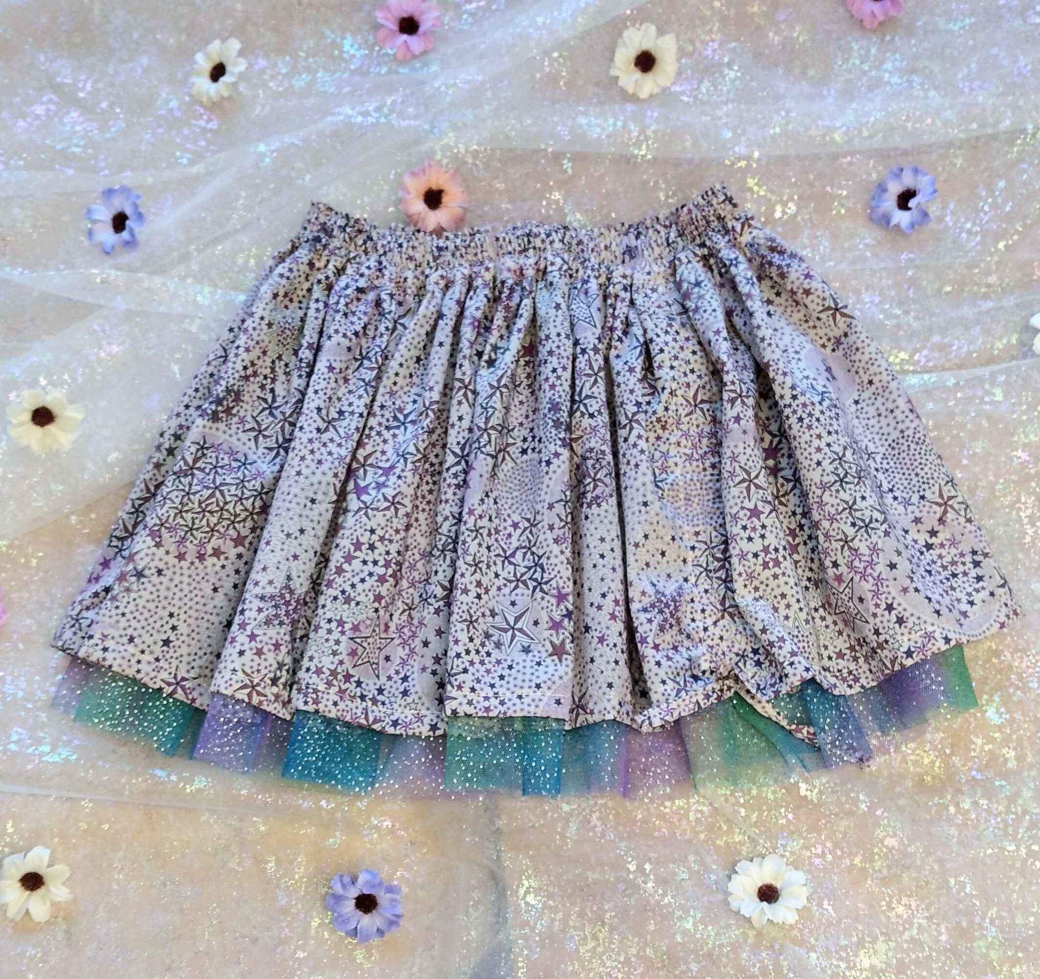 Perfect for parties and special occasions, this pretty little skirt is customizable. You can choose the print and tulle.