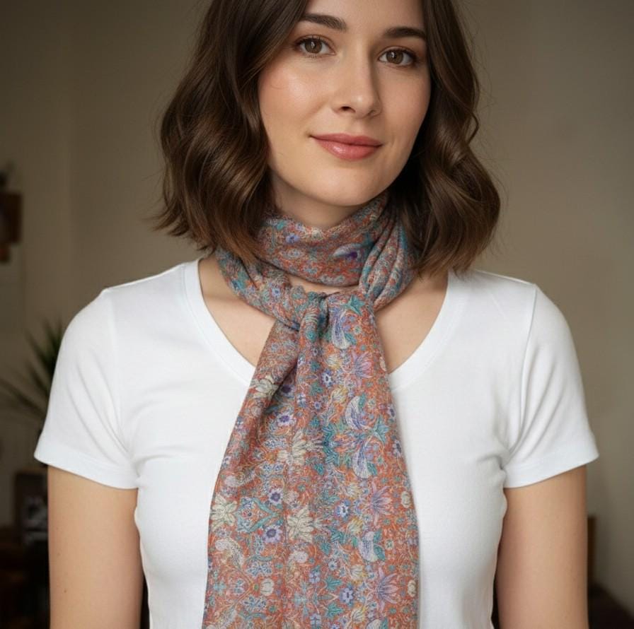 Liberty print silk chiffon scarf or snood from the Strawberry Thief collection