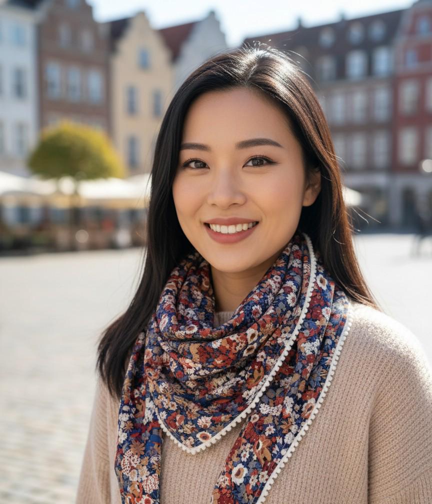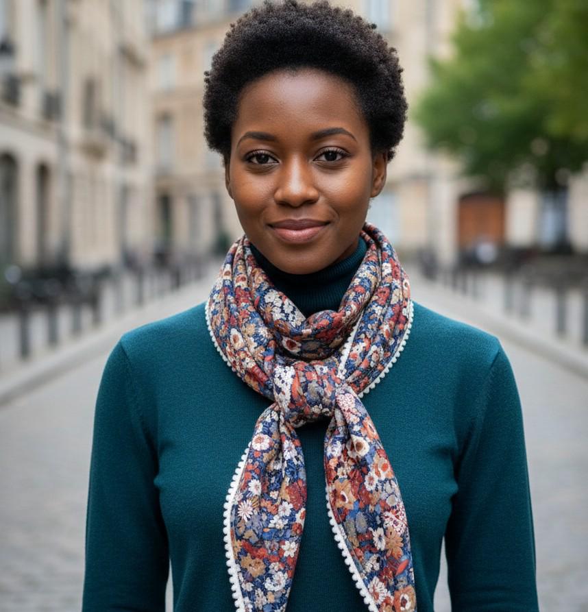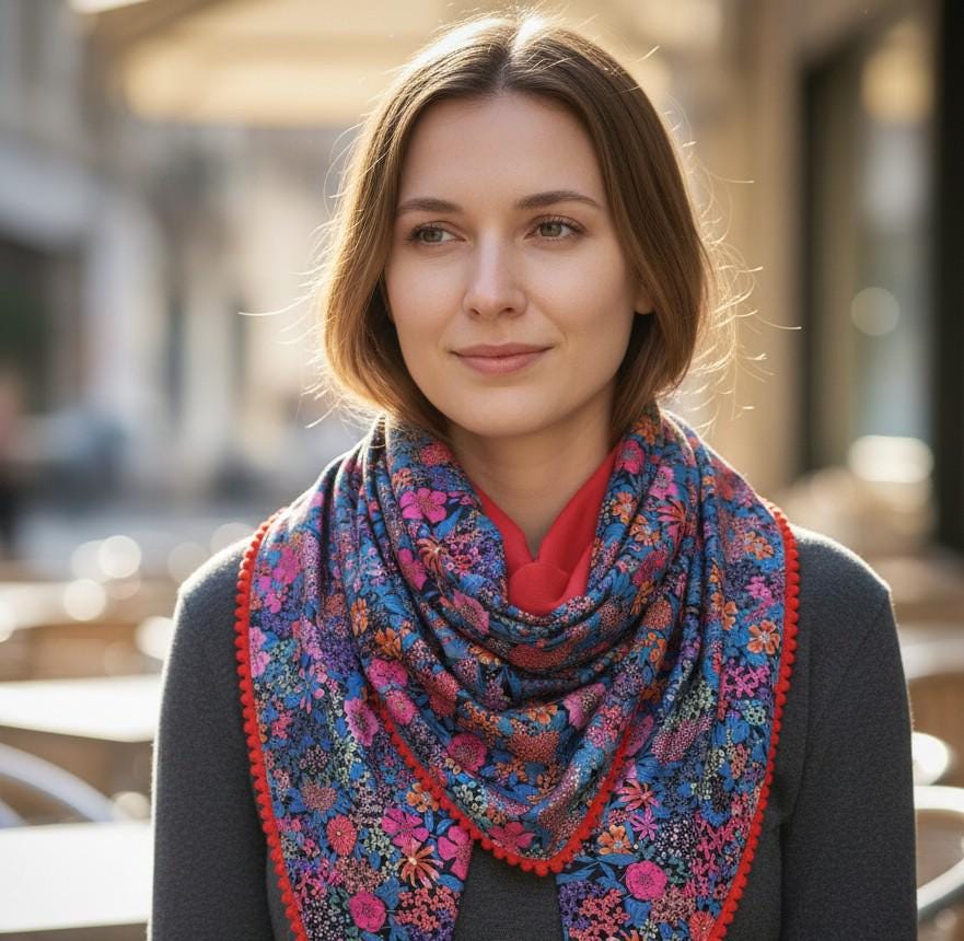 This scarf has a touch of boho chic with its mini pompom trim, lined in soft and warm cotton flannel. Your favorite Liberty print can keep you warm even in winter 💕