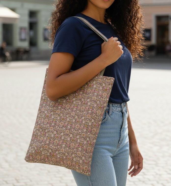 Tote bag in Liberty Moon Flower pink poplin and bubblegum pink wide-wale corduroy. Reversible.