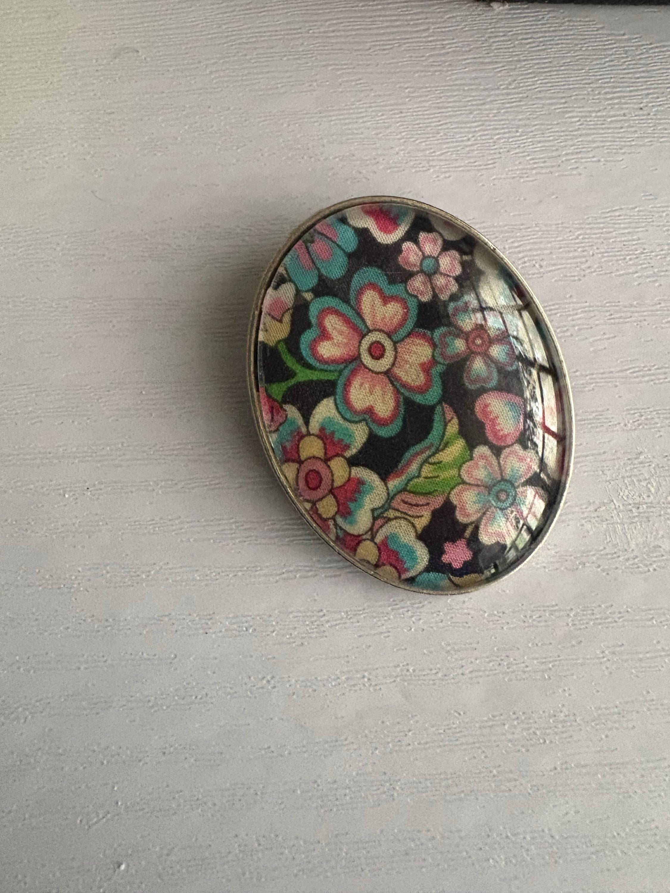 Fancy chain necklace, 20mm round pendant or 18x25mm drop, glass cabochon with Liberty fabric inclusion, chain length approximately 45cm. Stainless steel