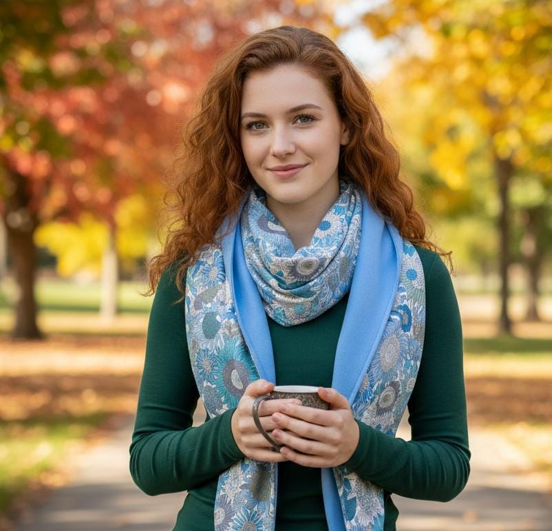 Large scarf lined in soft and warm cotton flannel