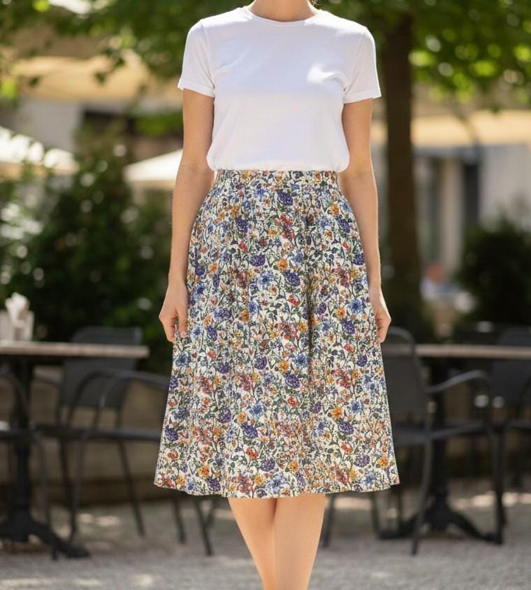 Rare, beautiful skirt in fluid and lightweight Liberty of London Rachel Meadow viscose.