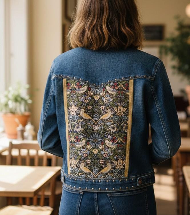 Customization done on a second-hand Stradivarius women's denim jacket (but new with tags, so in like-new condition)