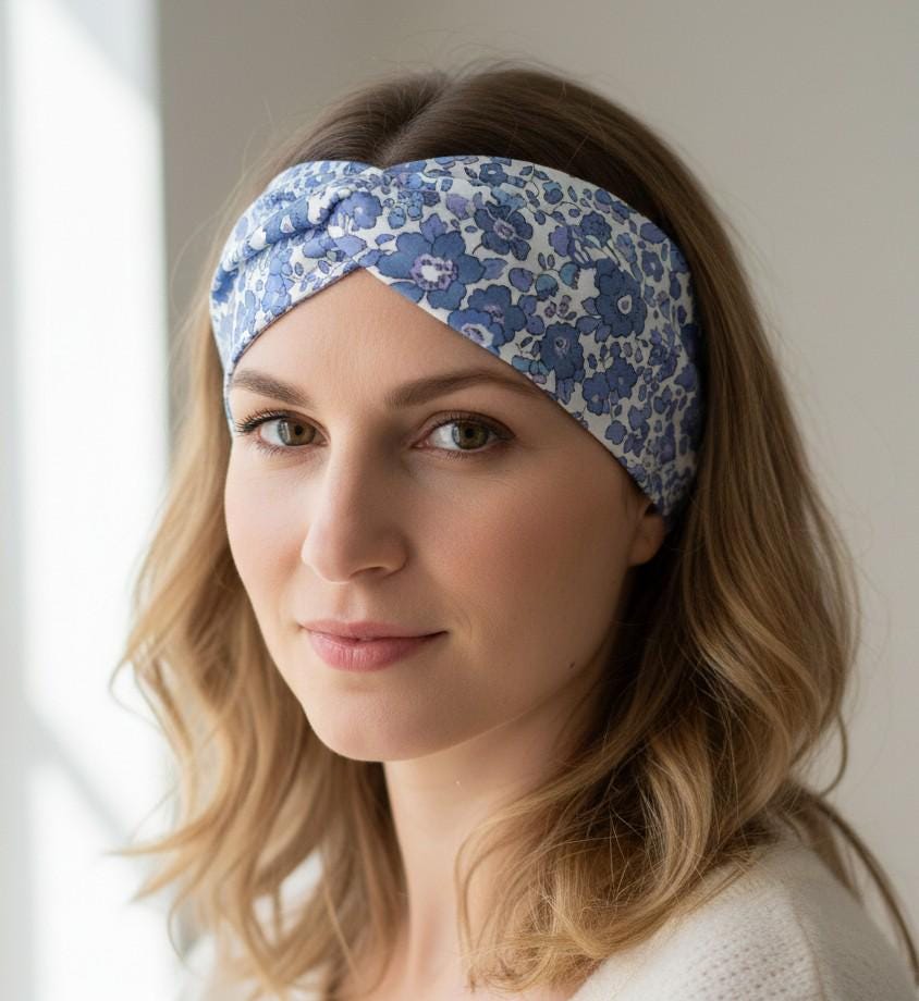 Upcycled headbands made from clothing from a ready-to-wear brand that creates designs in exclusive jerseys in collaboration with Liberty.