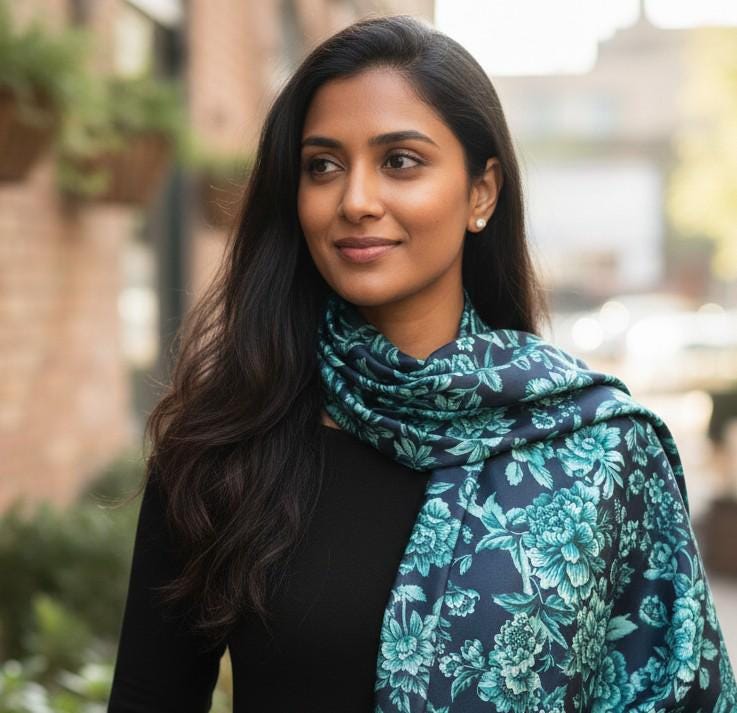 Liberty print silk scarf from the Regency Trail collection, part of the Liberty X Bridgerton collection