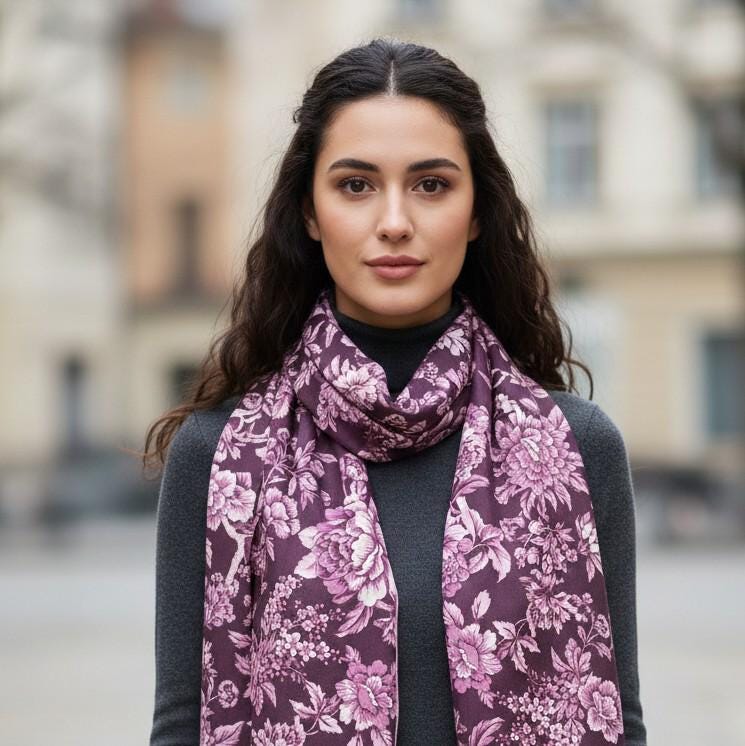 Liberty print silk scarf from the Regency Trail B collection, Liberty X Bridgerton