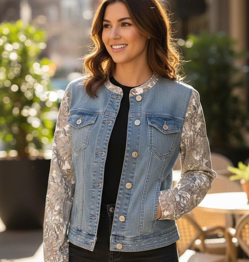 Customization done using a second-hand women's denim jacket in new condition.
