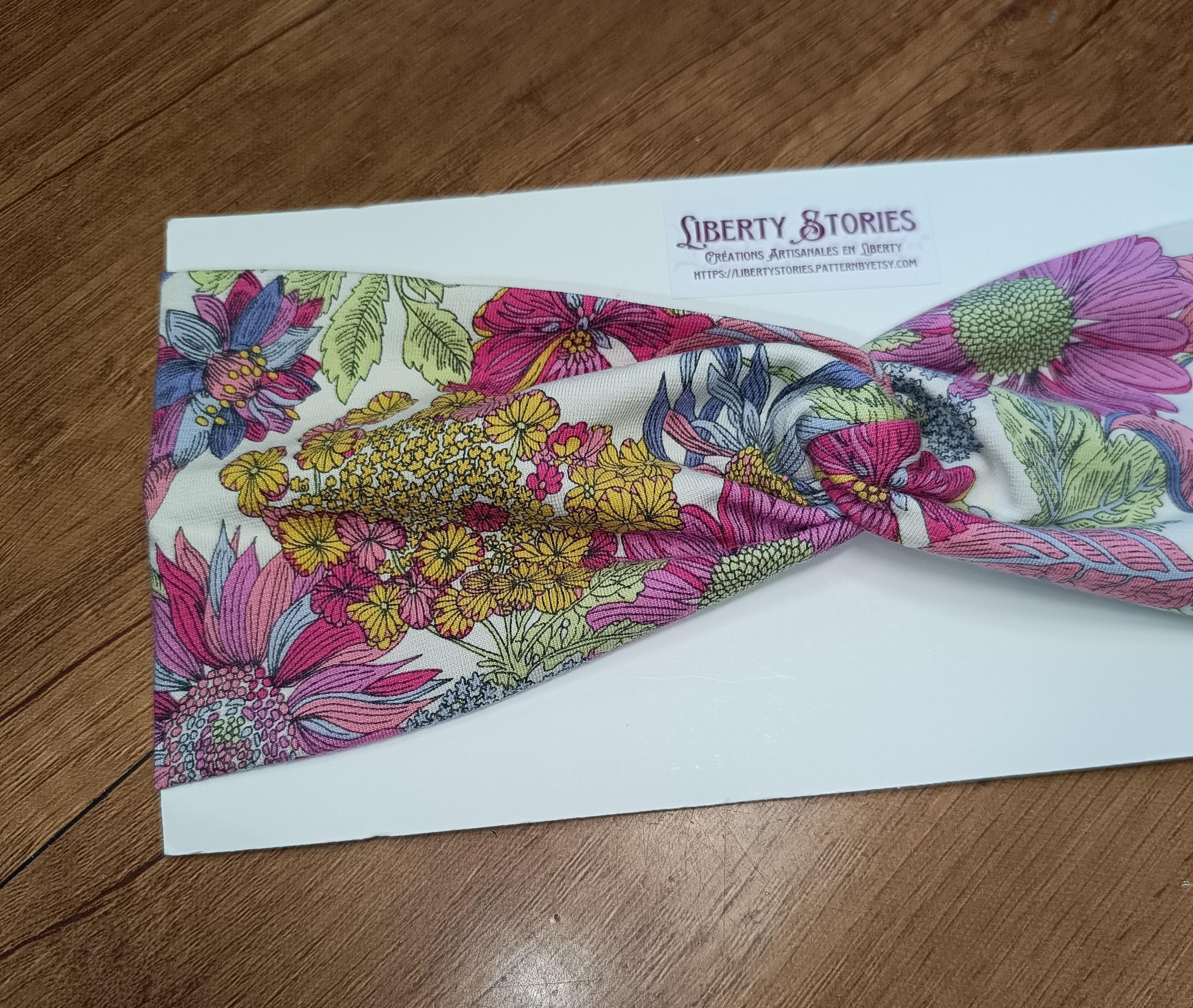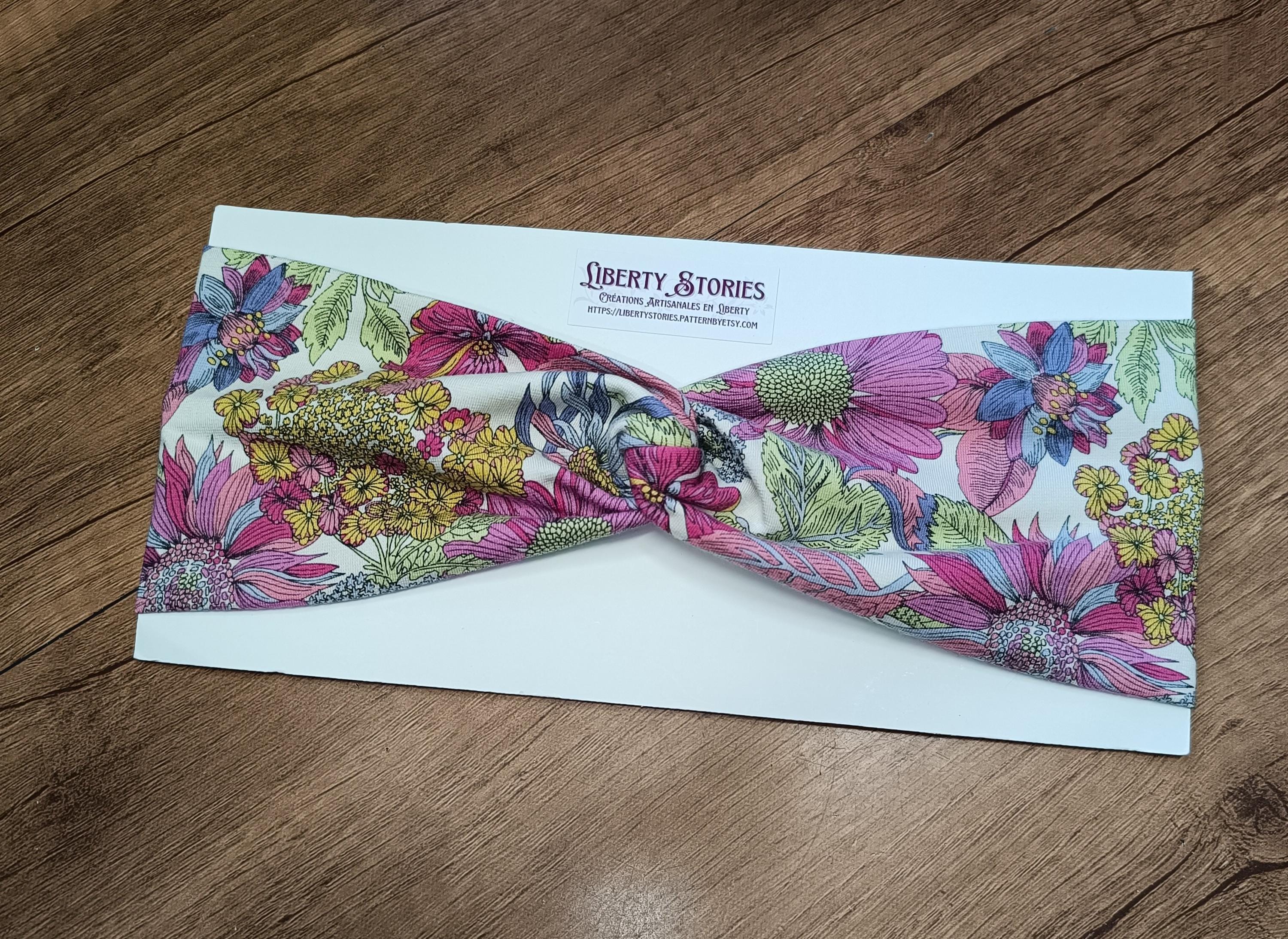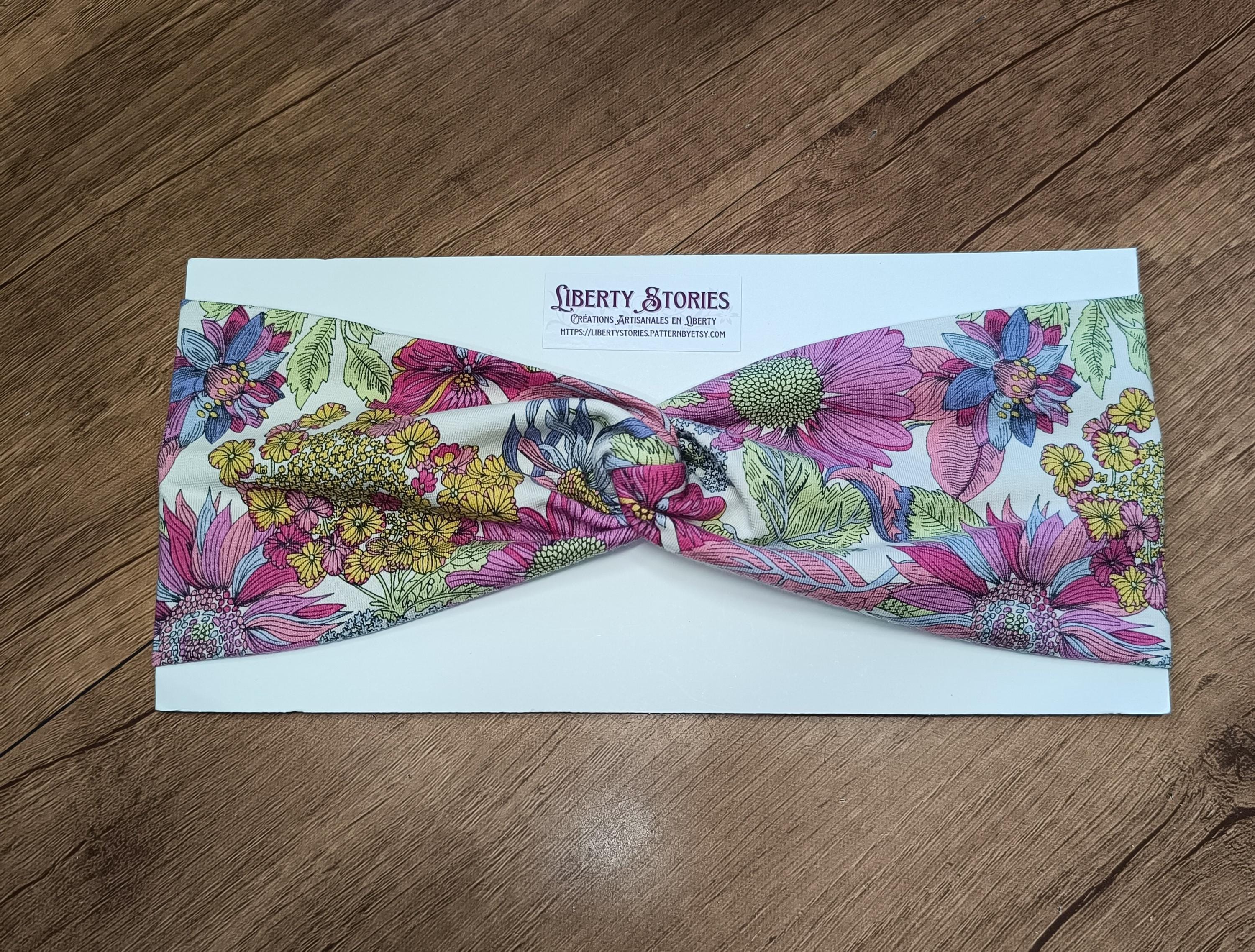Liberty jersey headbands with multicoloured Angelica print, ideal for completing your look, for sports, holidays or even for every day.