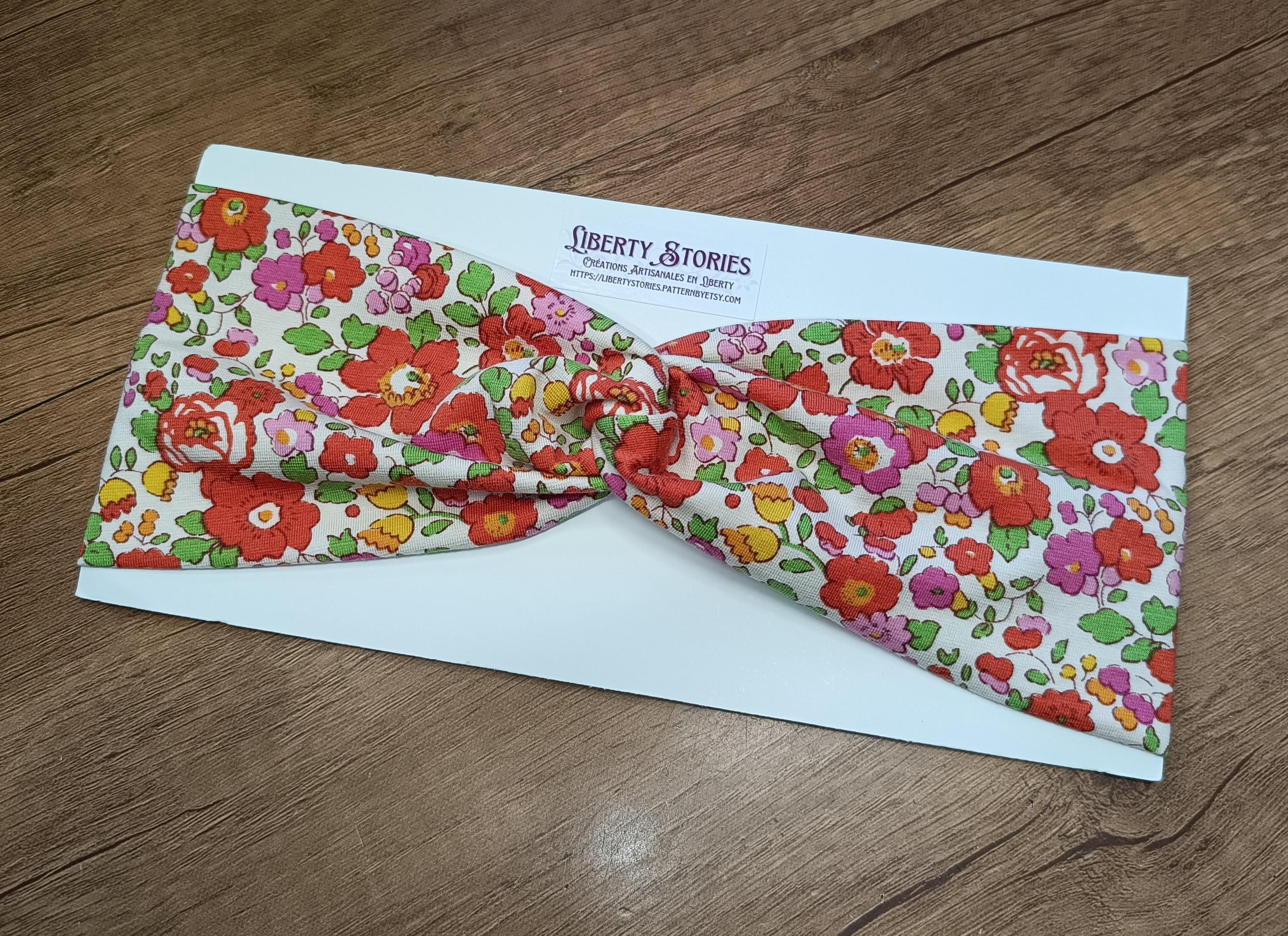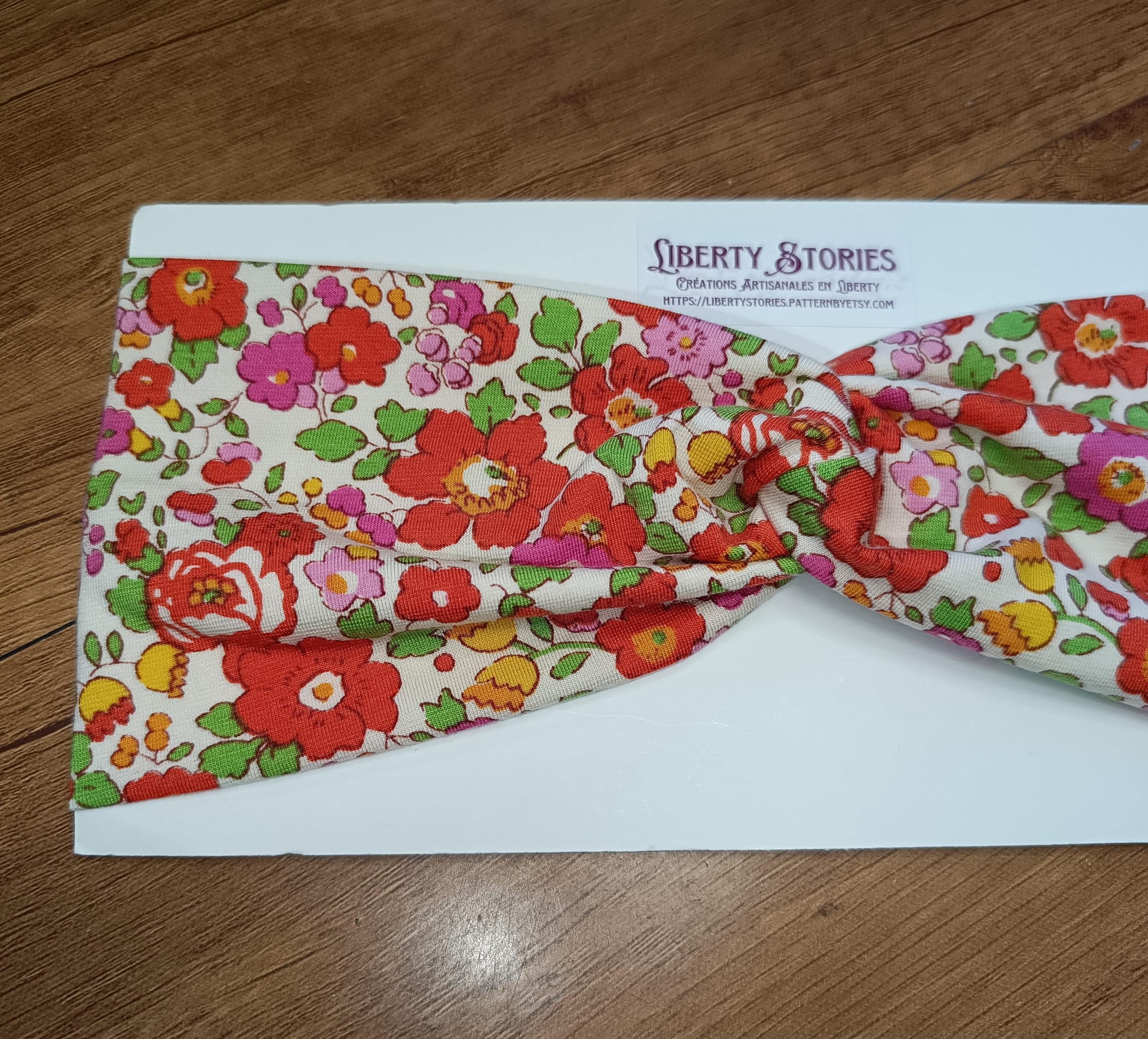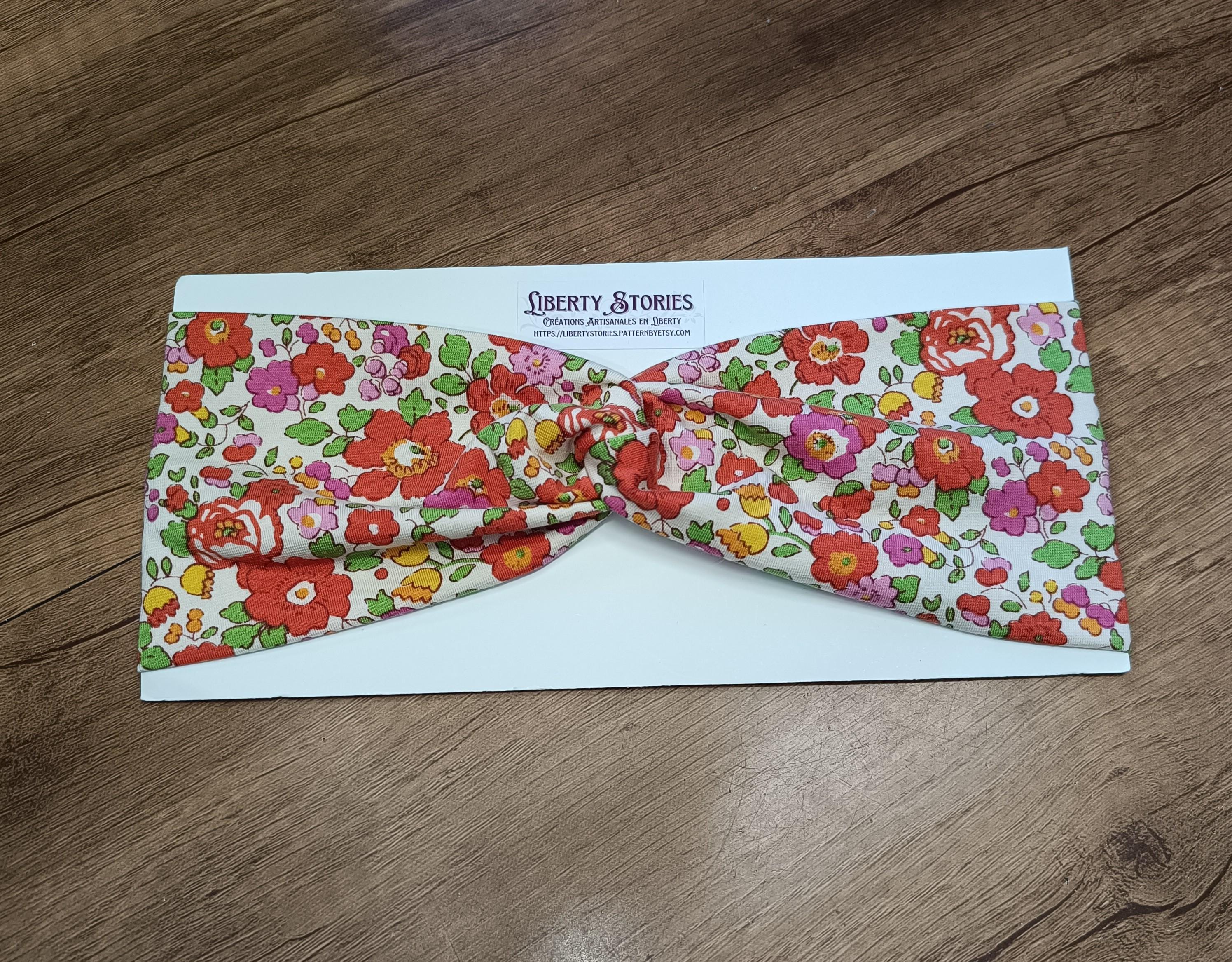 Liberty jersey headbands with Betsy print in orange and green, ideal for completing your look, for sports, holidays or even for every day.