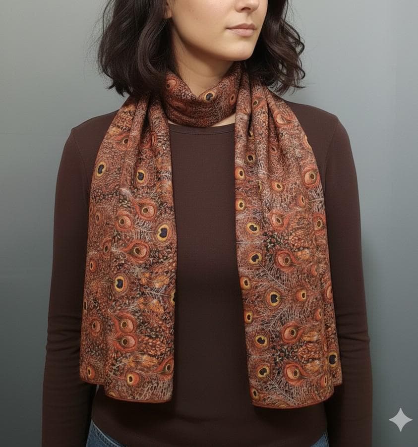 Liberty silk scarf with Peacock Manor print.