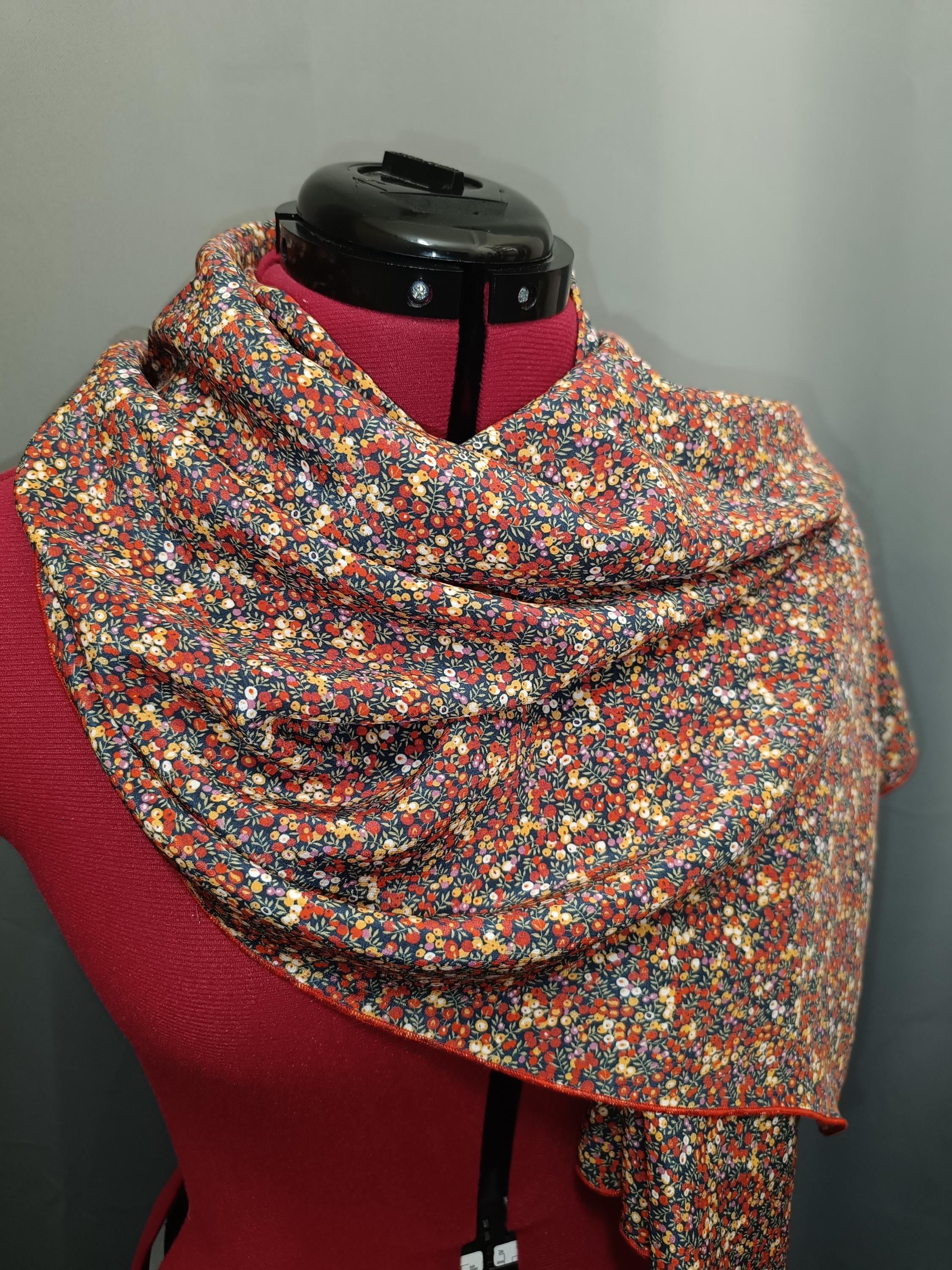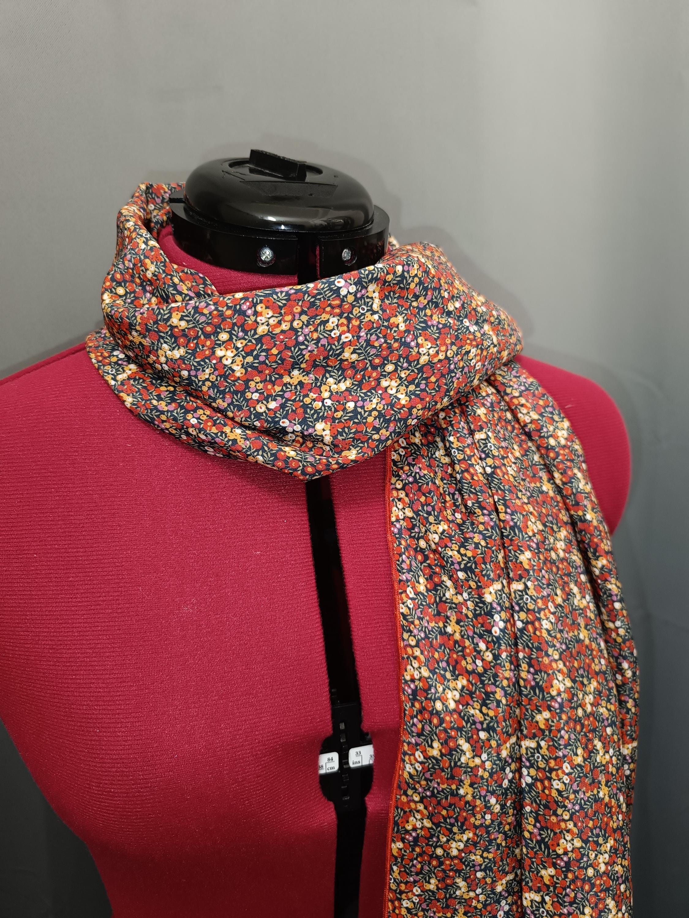 Liberty silk scarf with Wiltshire Bud Autumn print.