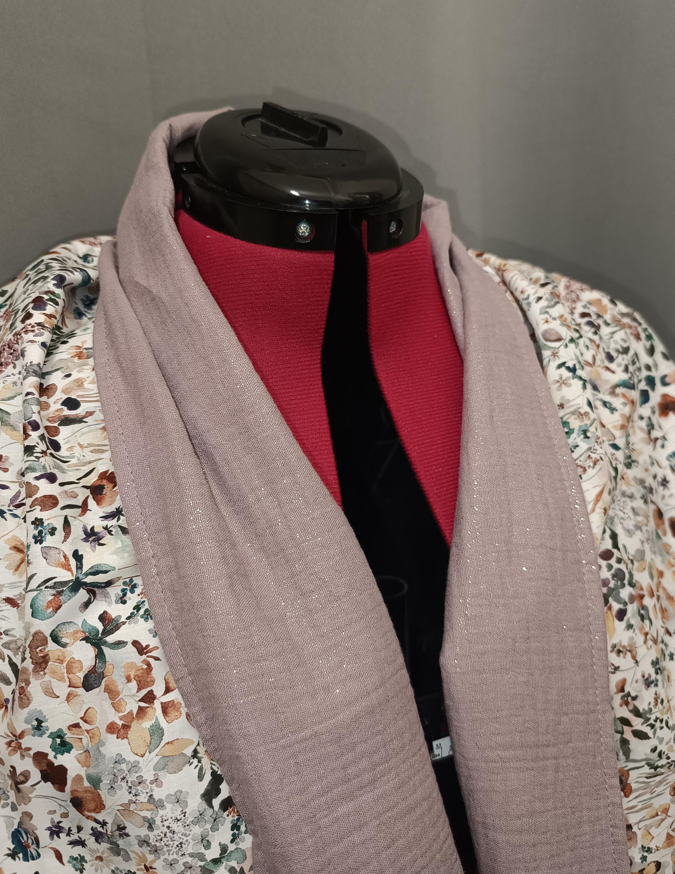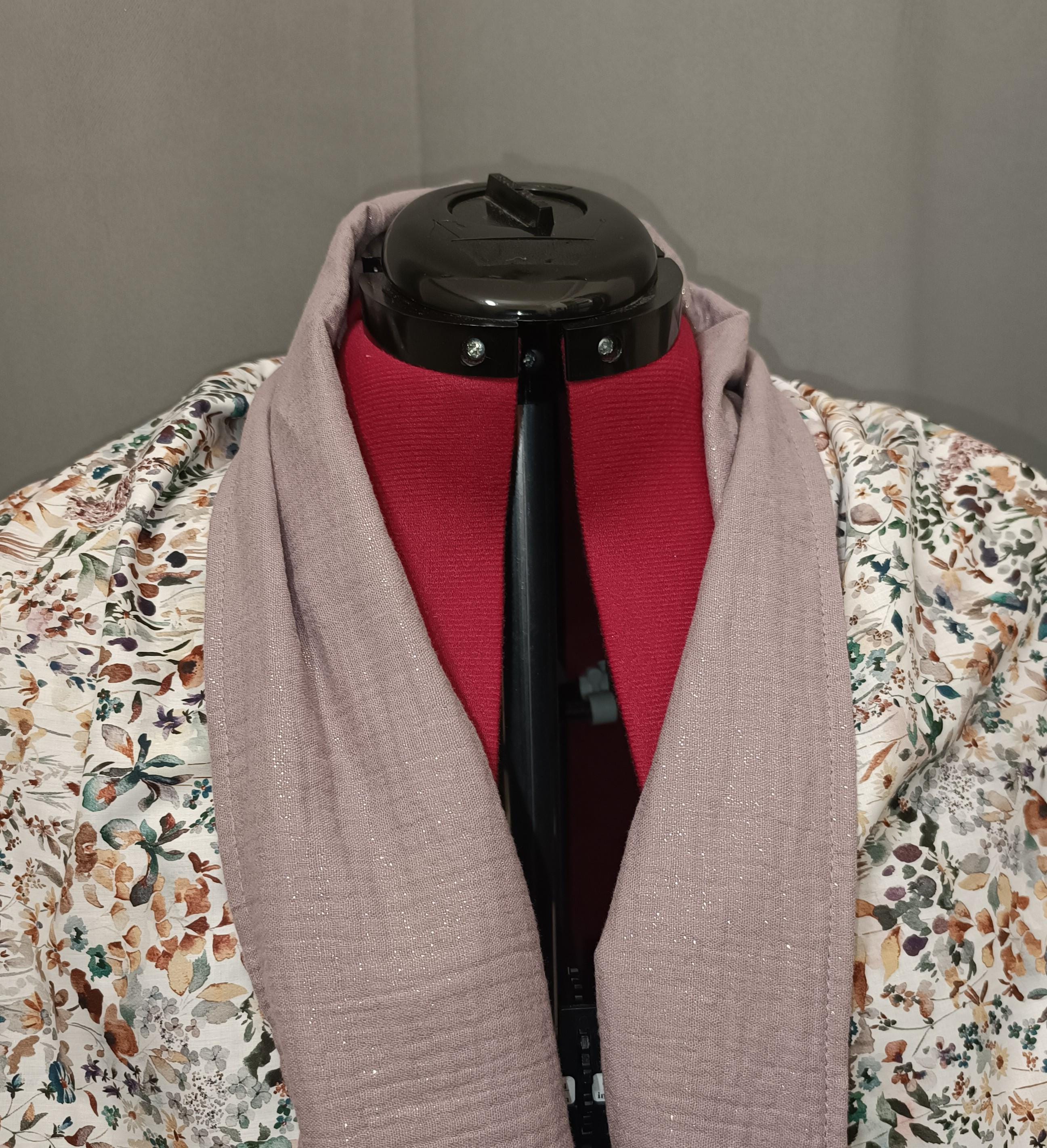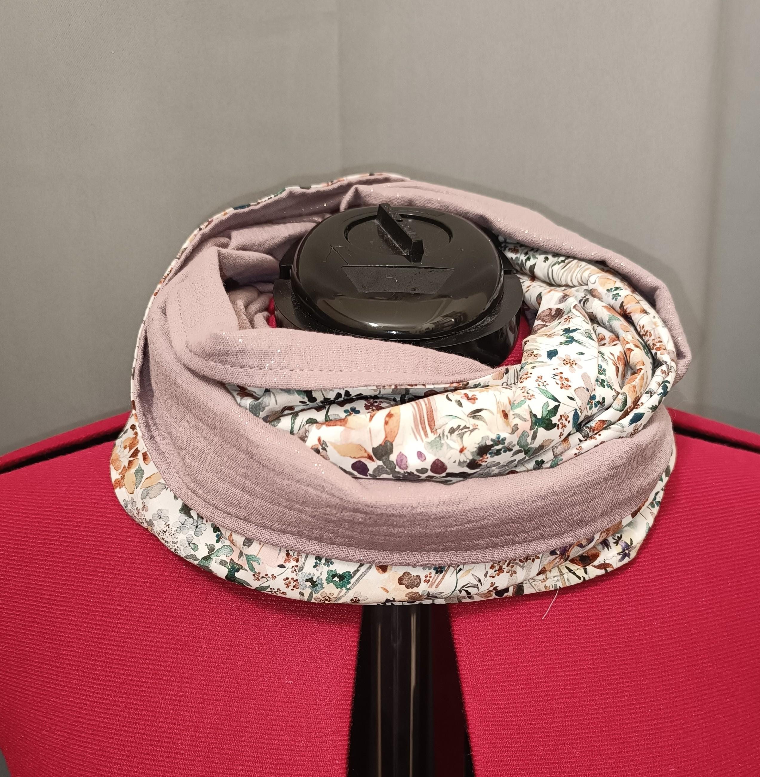 Dimensions 55cm wide and 130cm in diameter (double snood, 2 loops). Finished with topstitched edges.