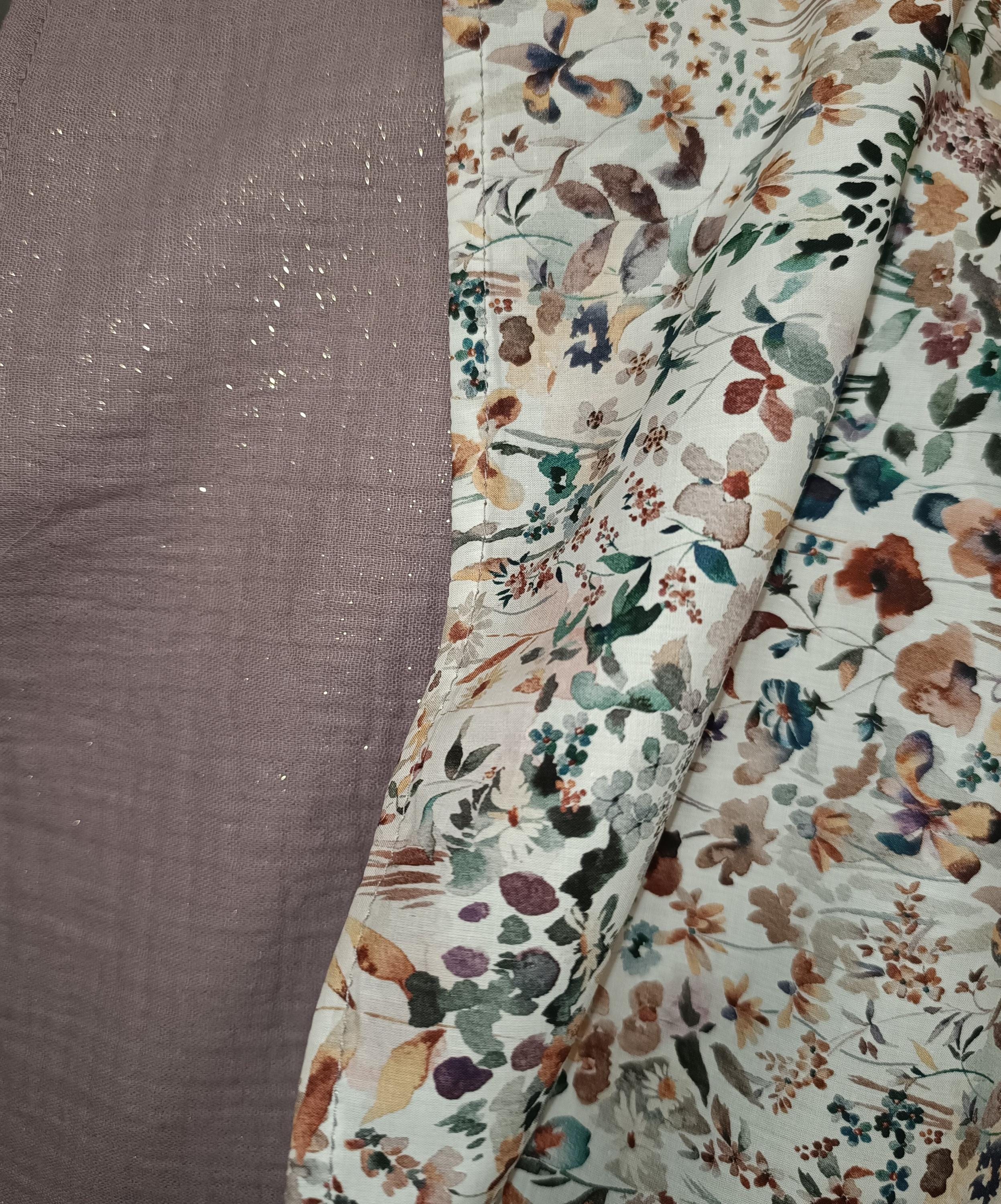 Made from genuine Liberty London tana lawn cotton printed with Felda, and lined with a slightly shiny parma double gauze cotton.