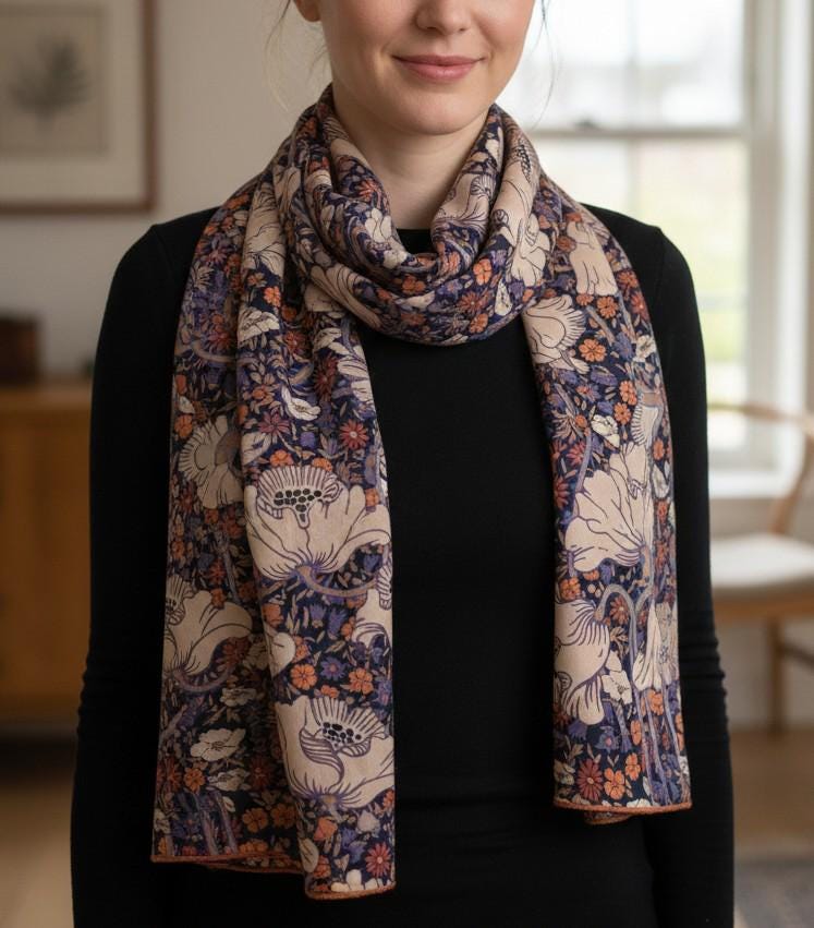 Liberty print silk scarf Clementina Poppy C