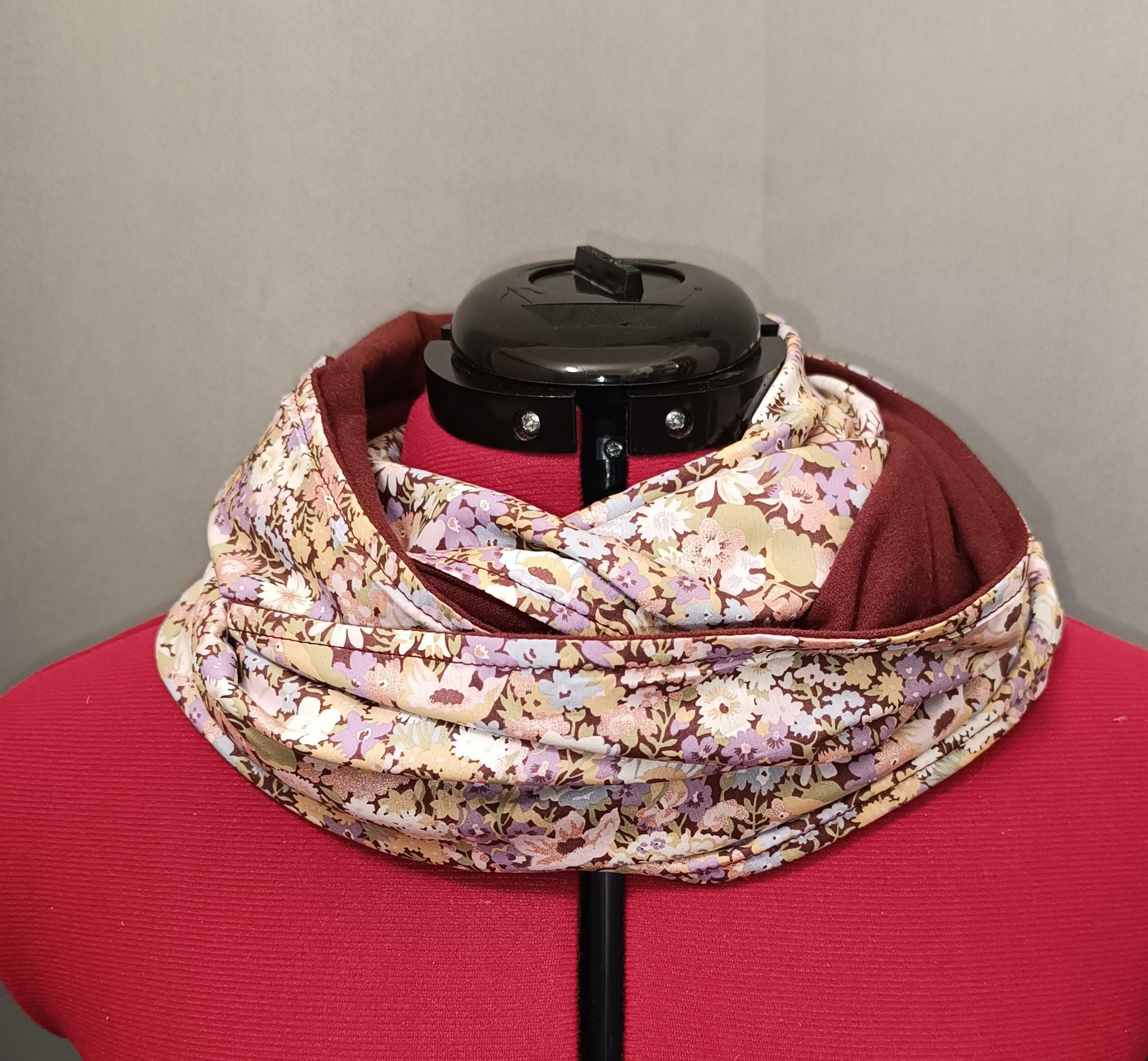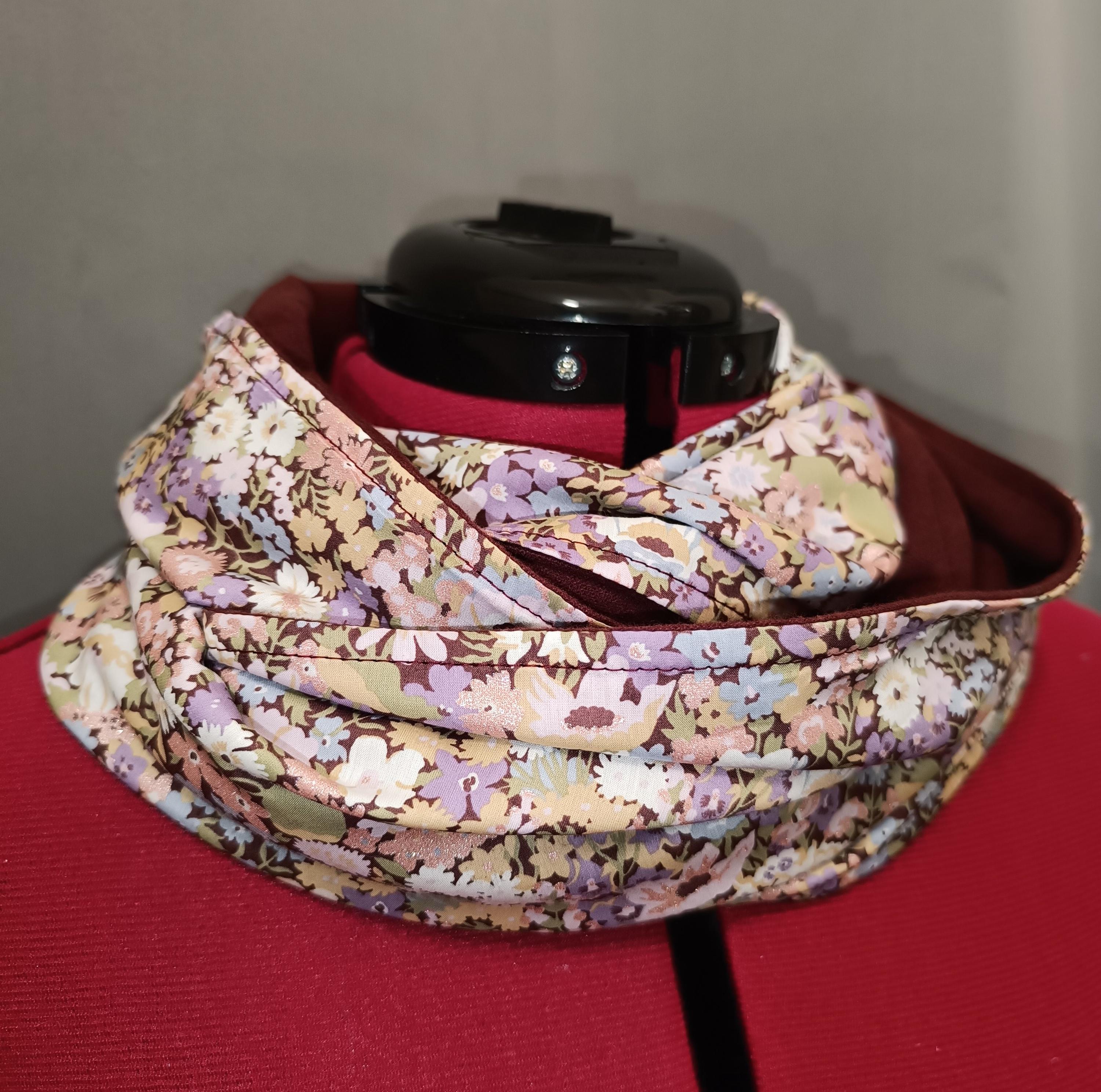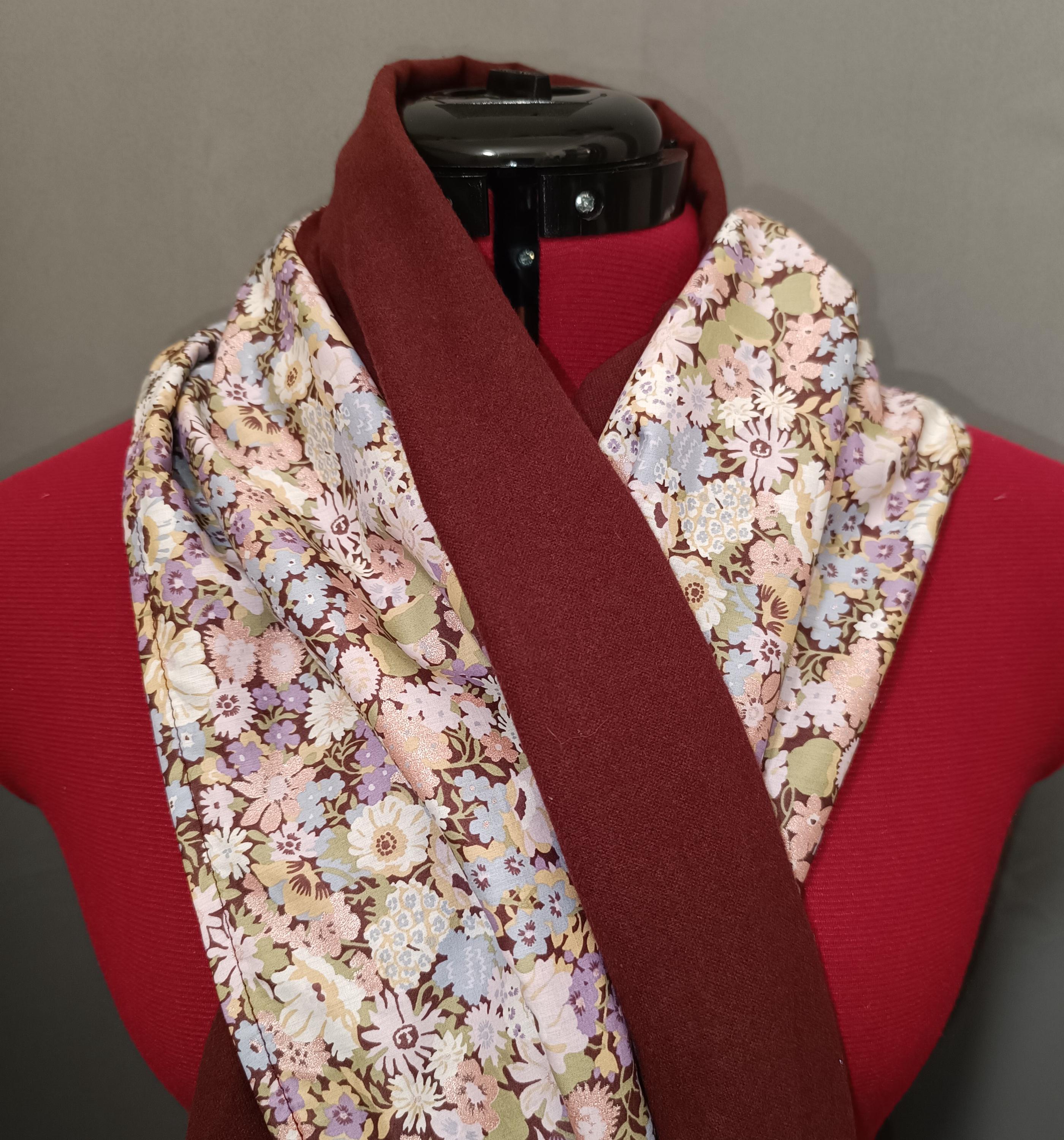 Made from authentic Liberty Of London Tana Lawn 100% Oeko Tex 100 cotton, lined with very soft and warm plain burgundy pure cotton flannel.