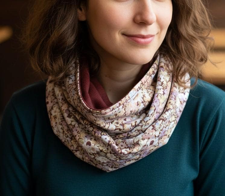 Snood dimensions: 40cm high and 130cm in circumference. Finished with topstitched edges.