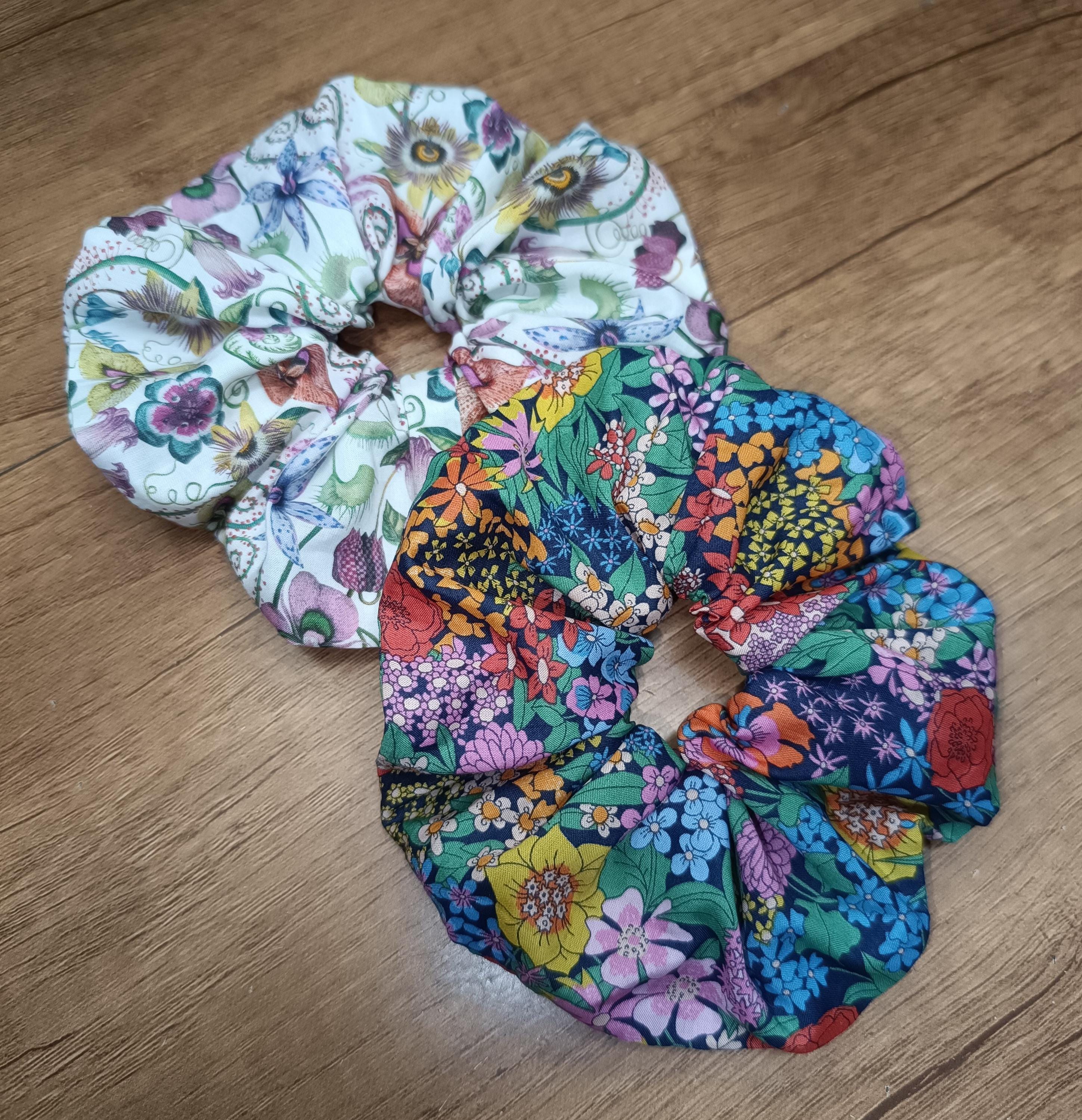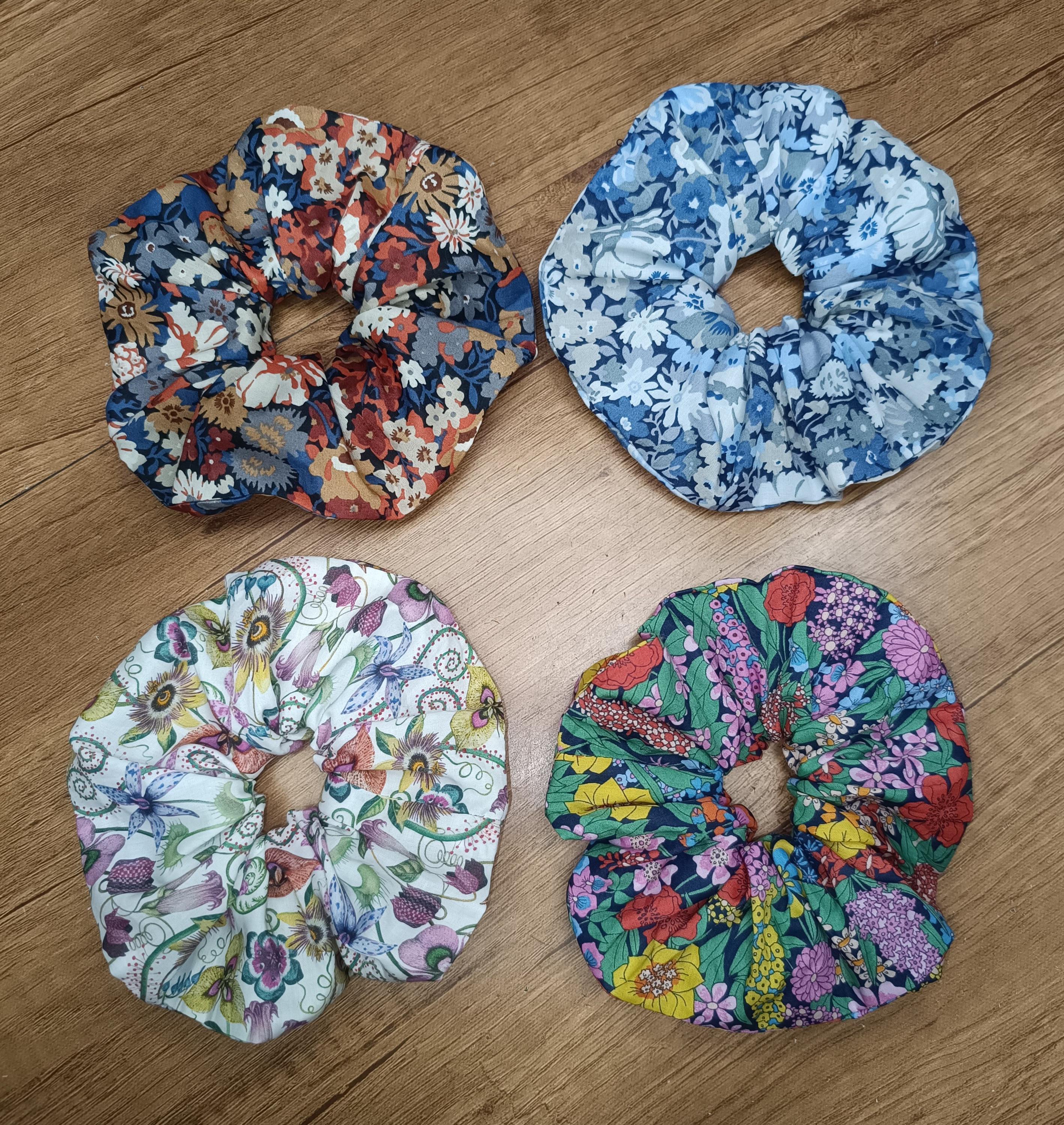 Liberty print scrunchie in various patterns.