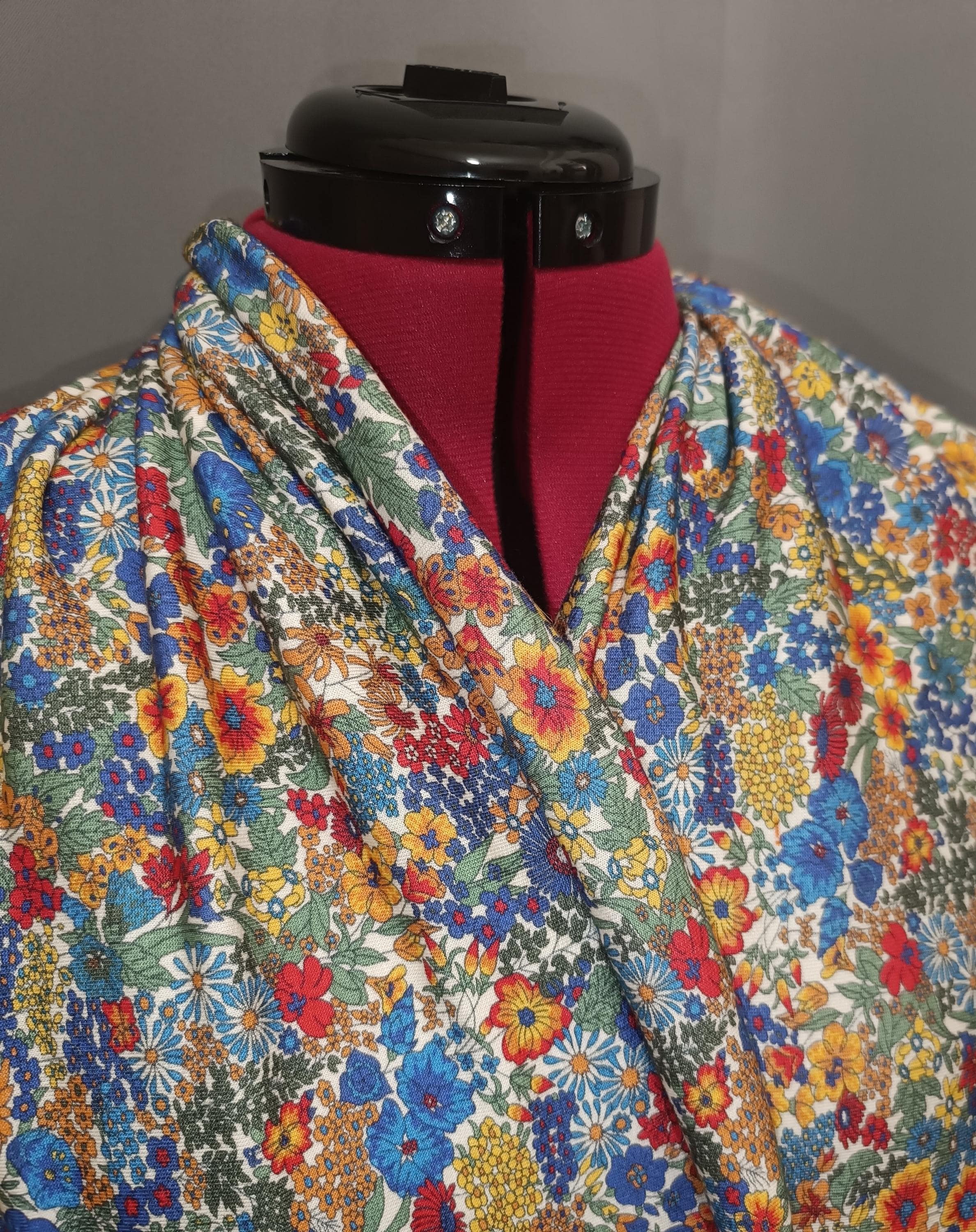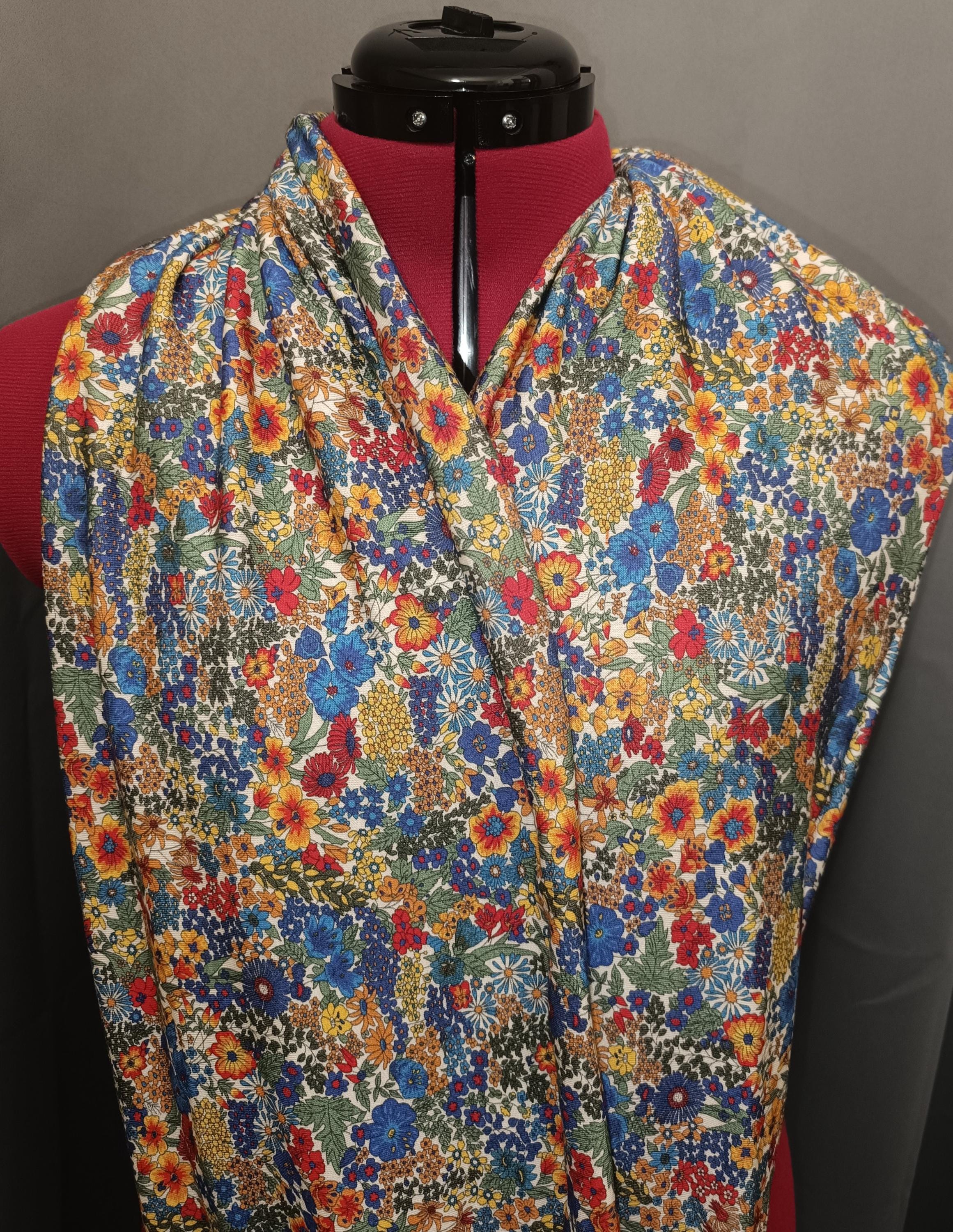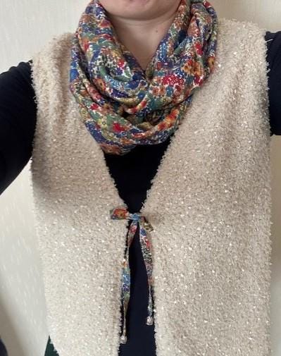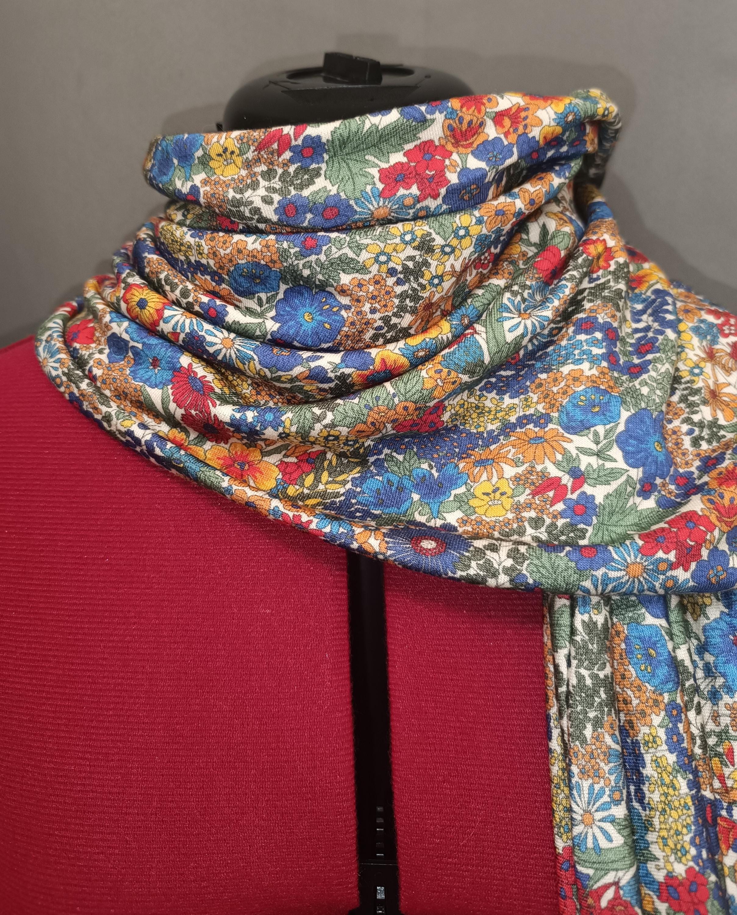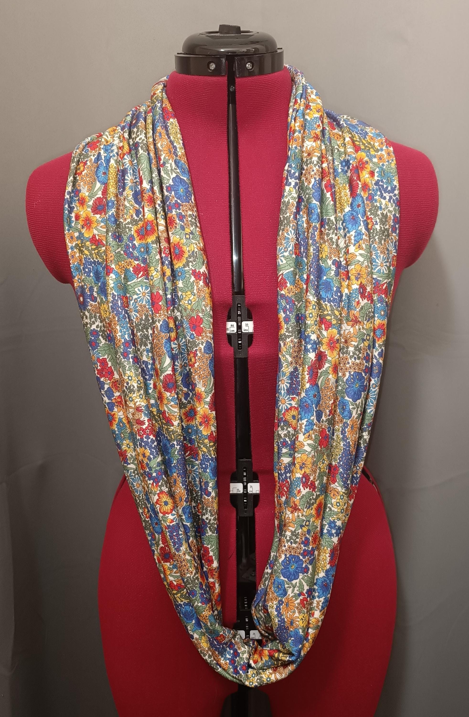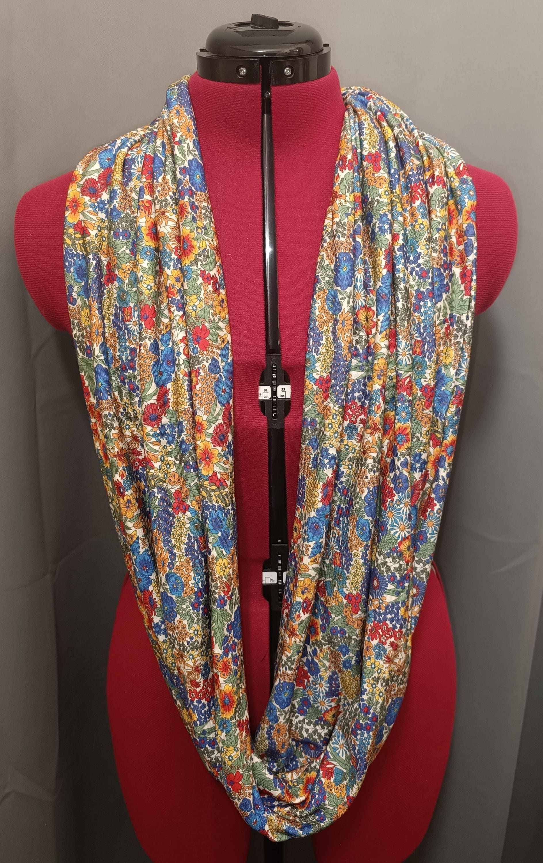 Magnificent circular infinity scarf in Liberty cashmere and wool jersey, Margaret Annie rainbow pattern.