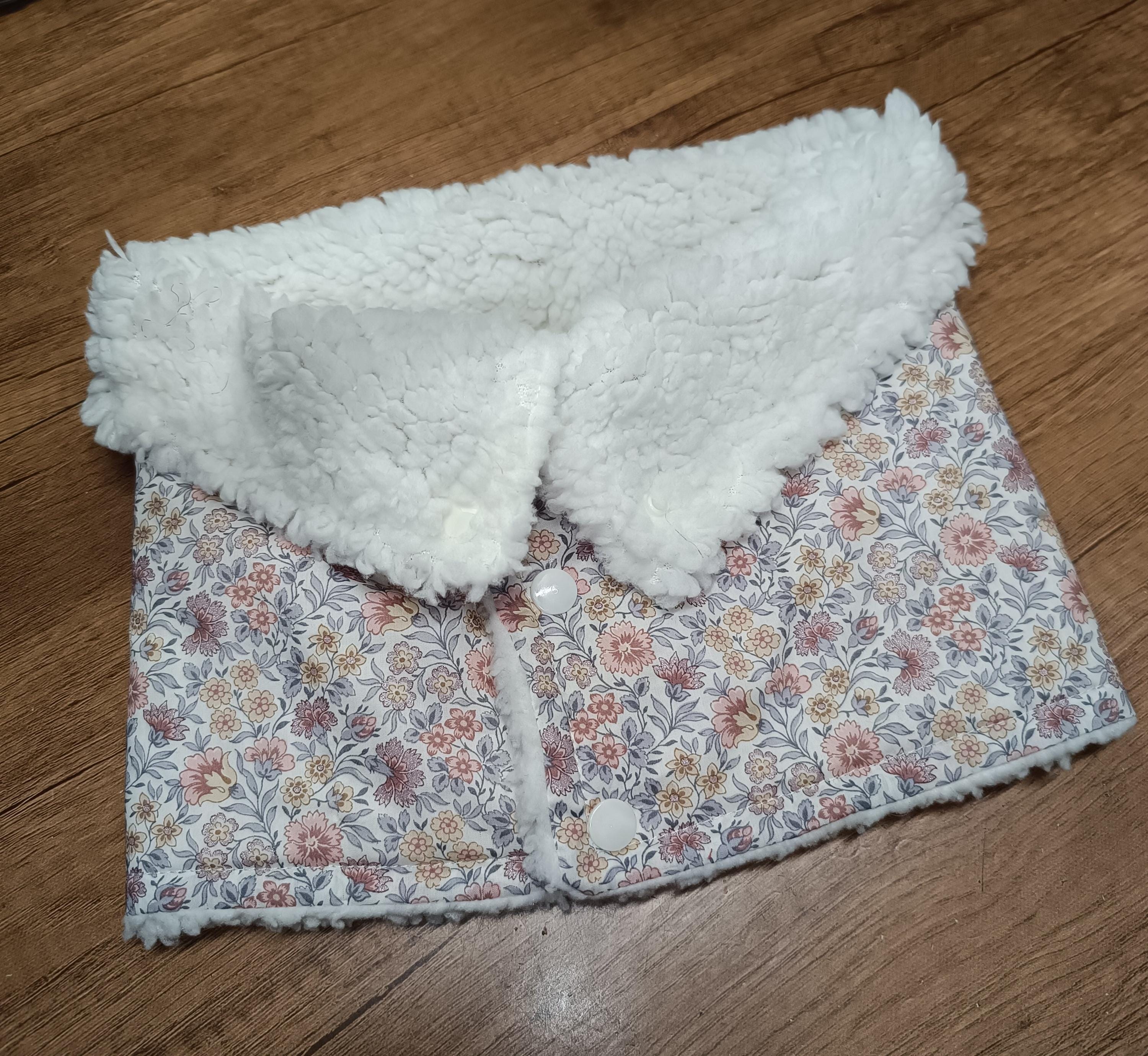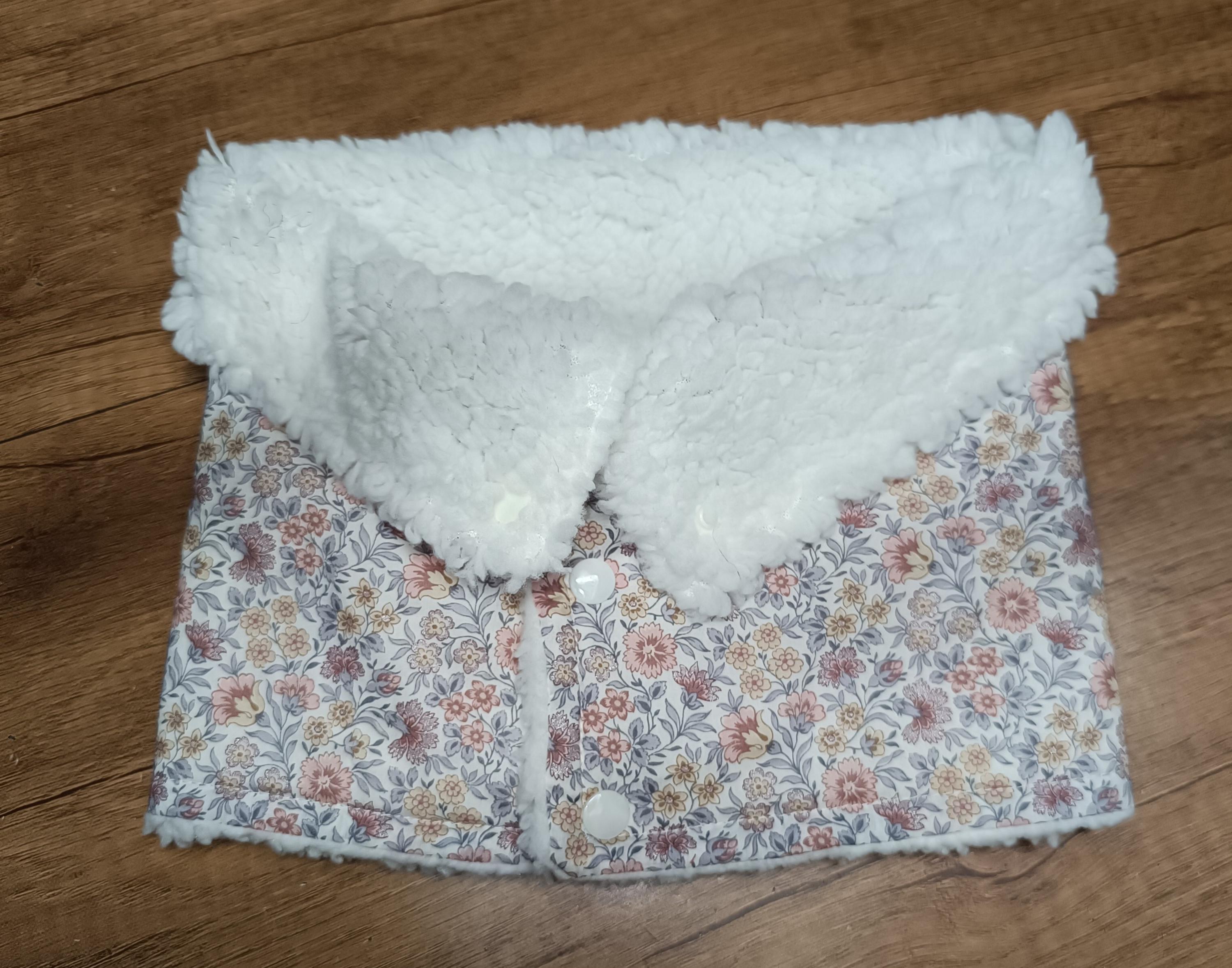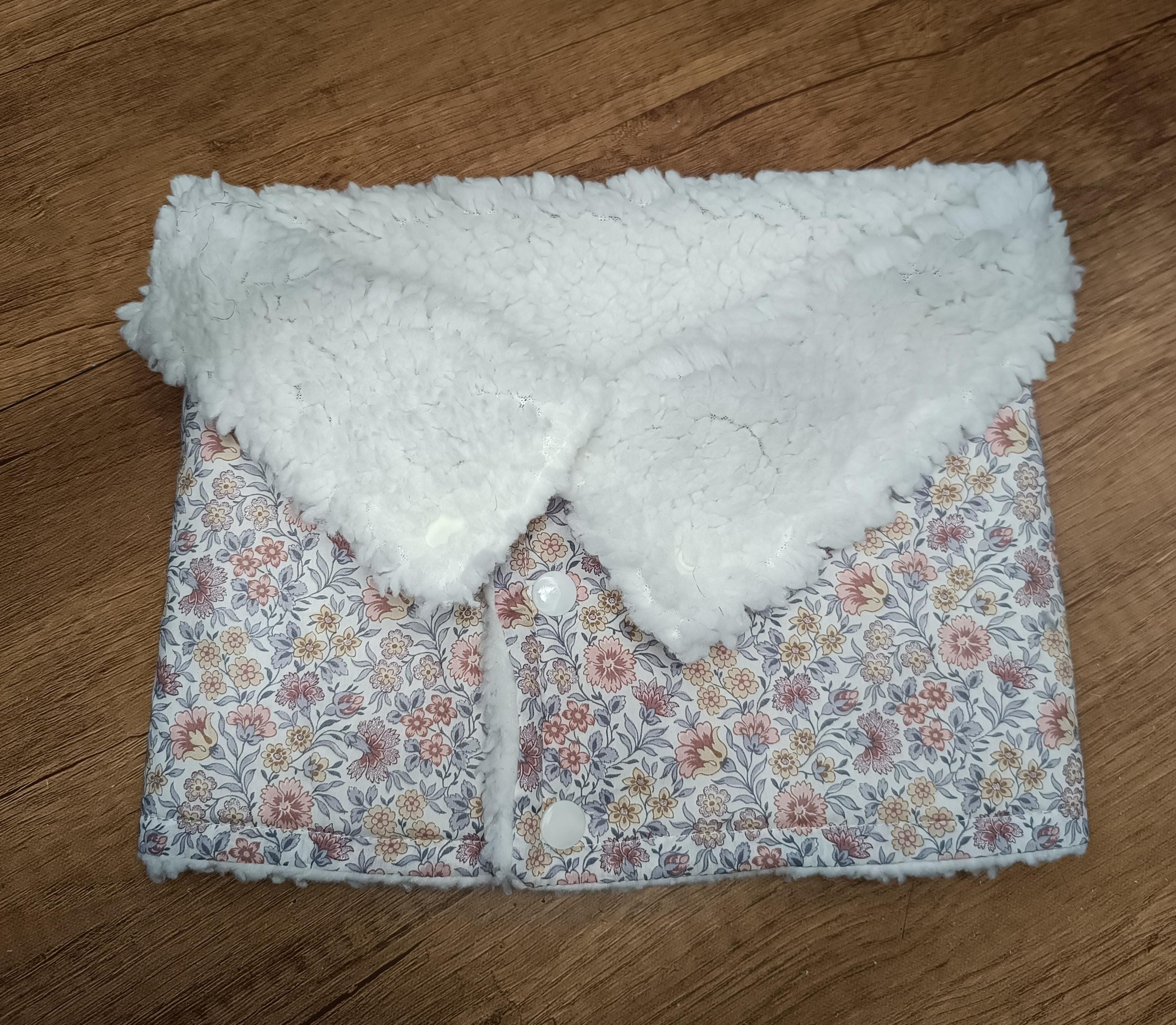 It is closed by four snaps for safety (anti-strangulation), which also allows the way it is worn to be adjusted.