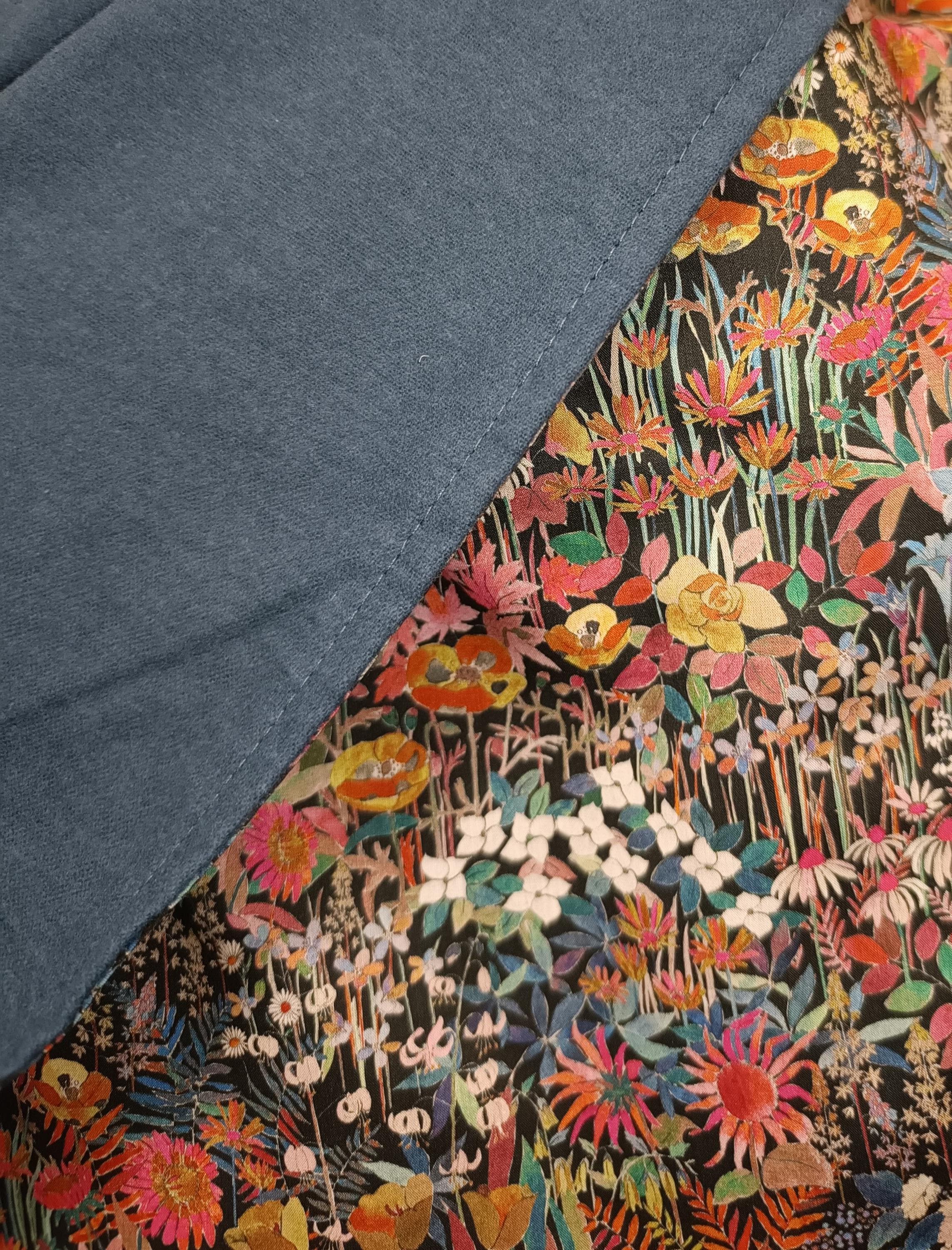 Made from authentic Liberty tana lawn cotton printed with Faria Flower and lined with a very warm and soft cotton flannel.