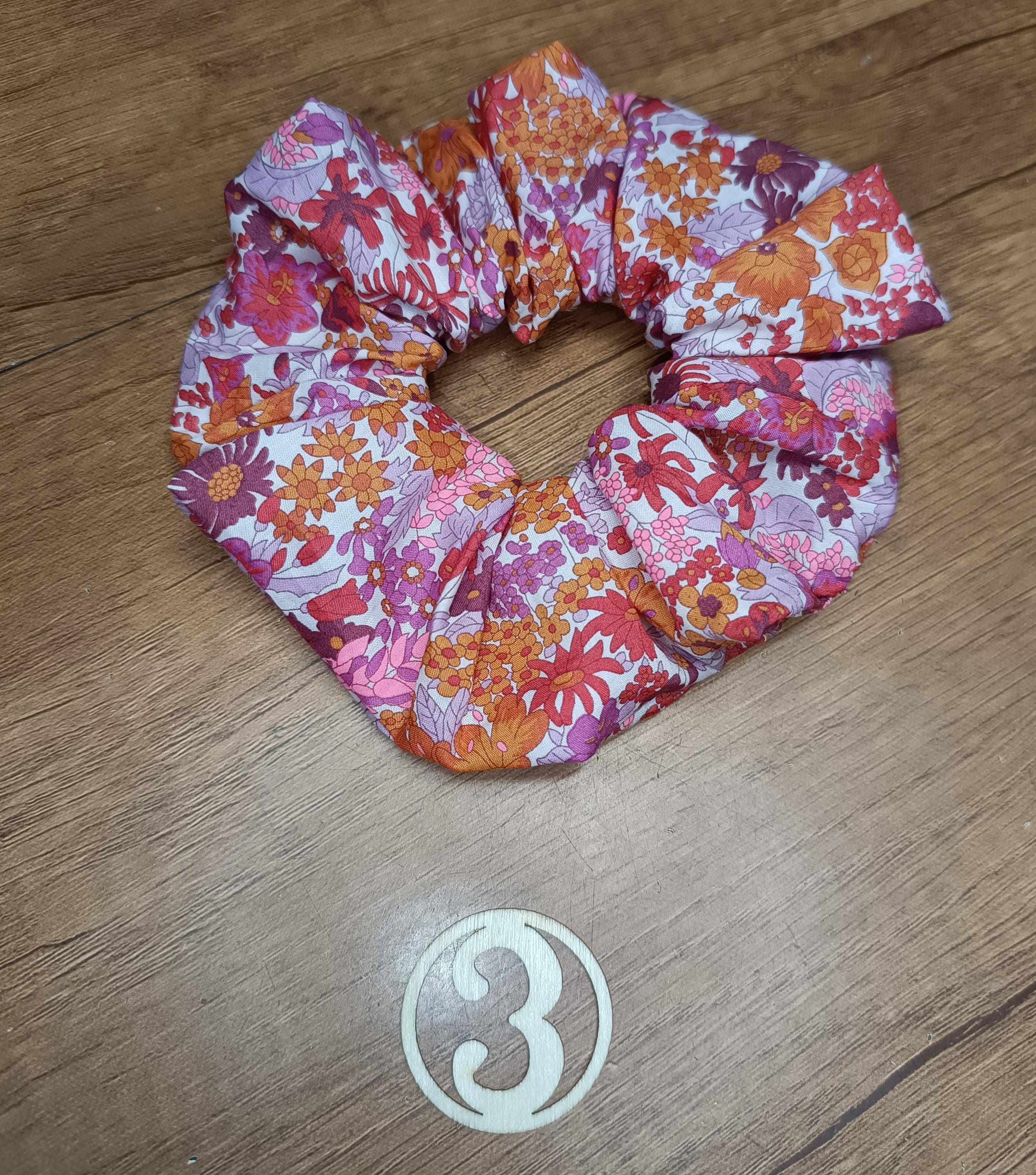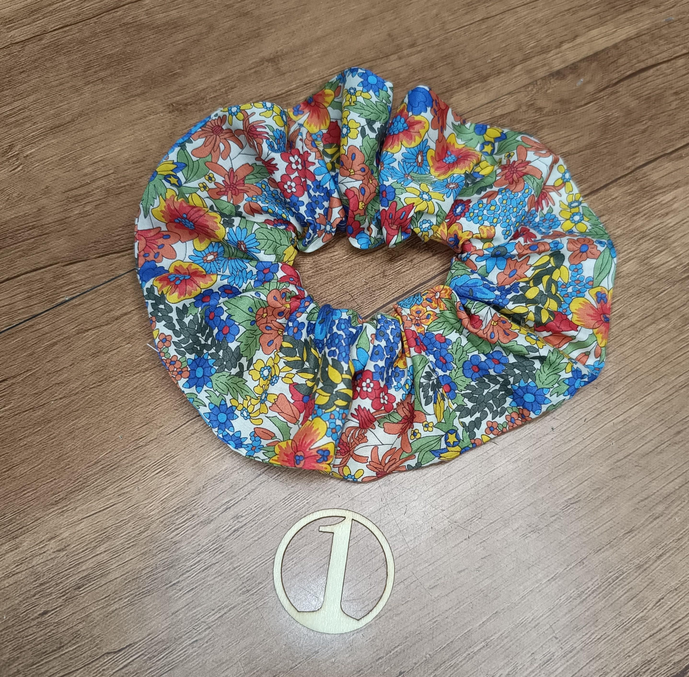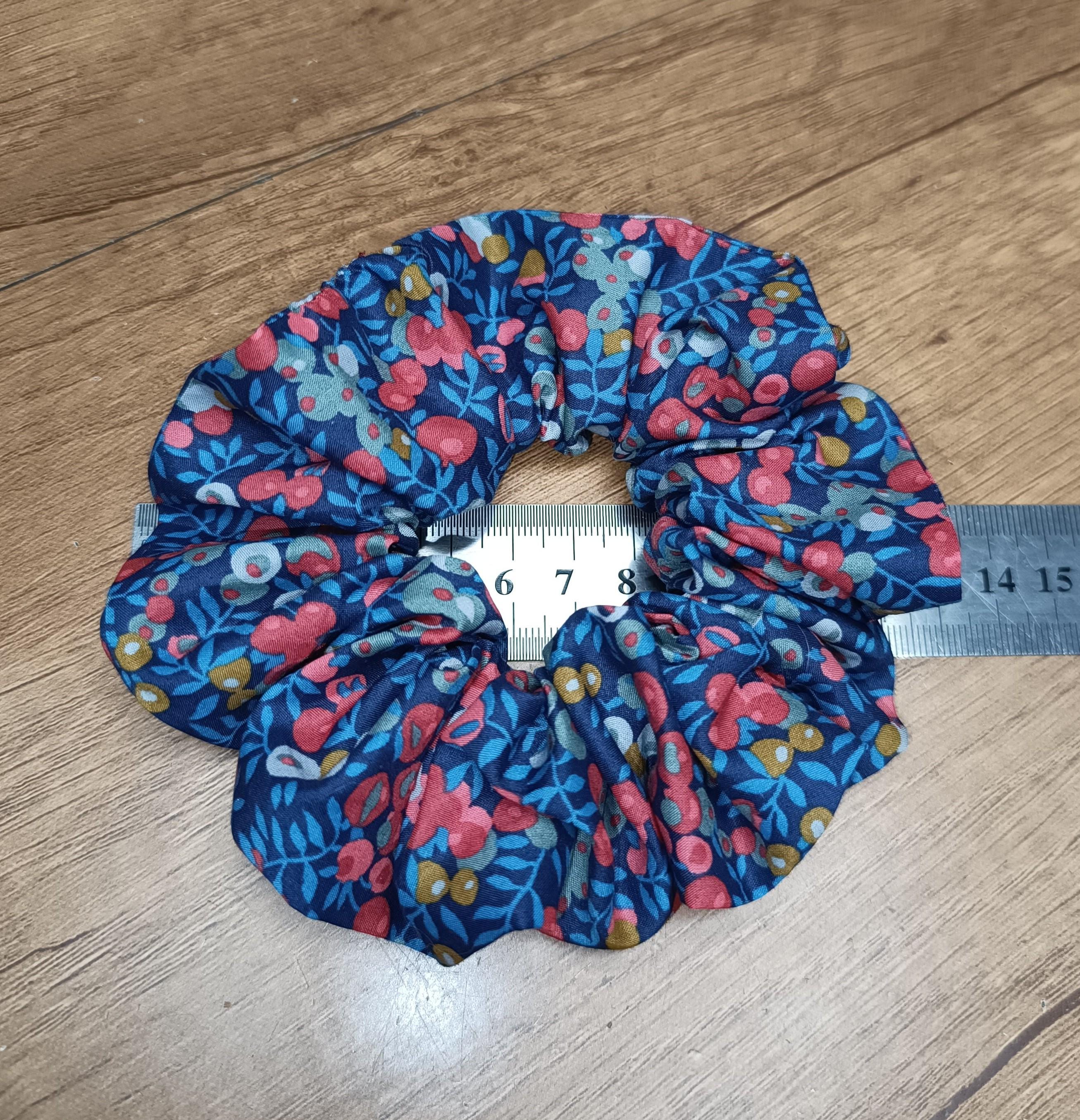 Adult or child scrunchie, elastic 2 to 3 turns depending on the thickness of the hair.