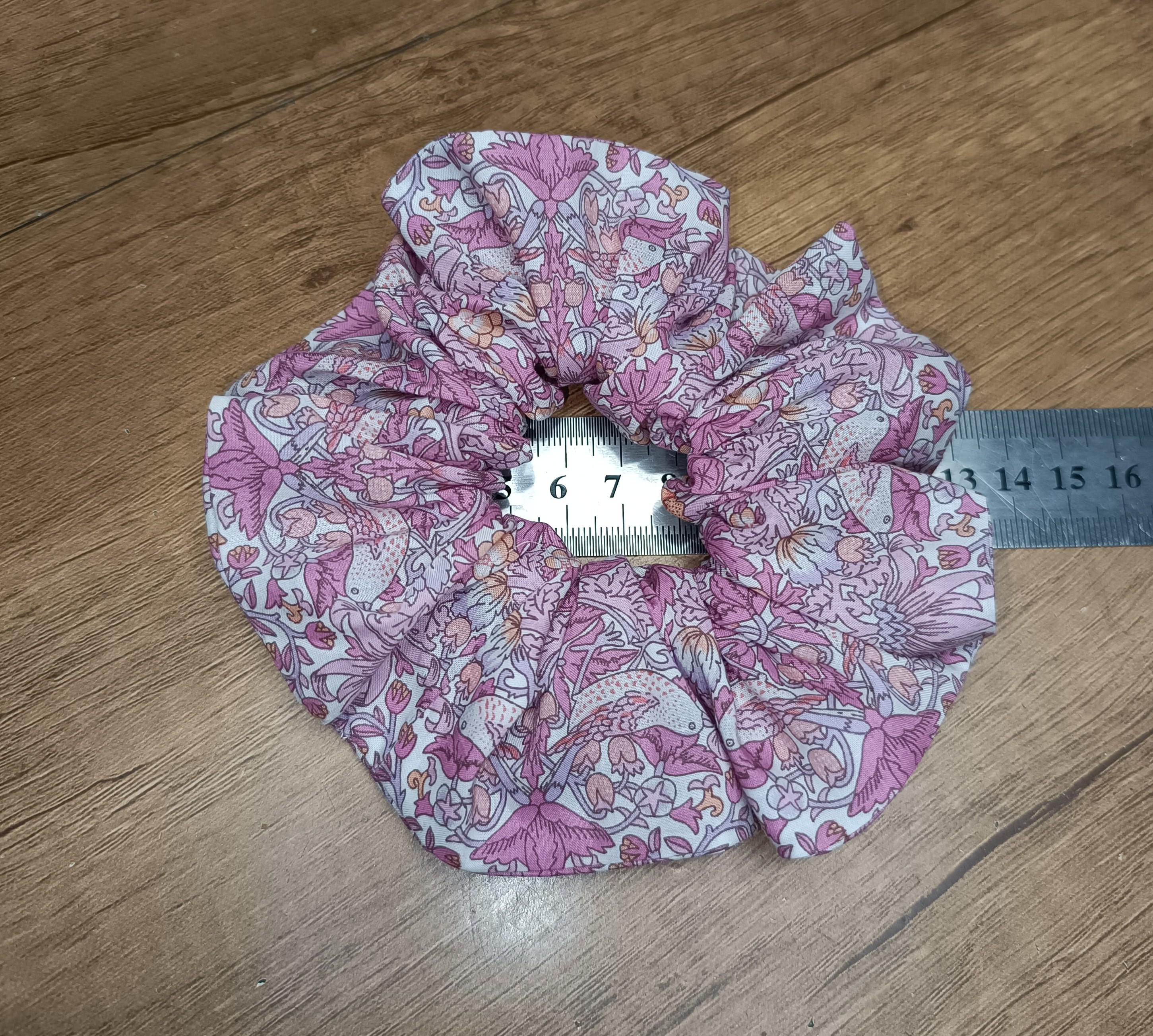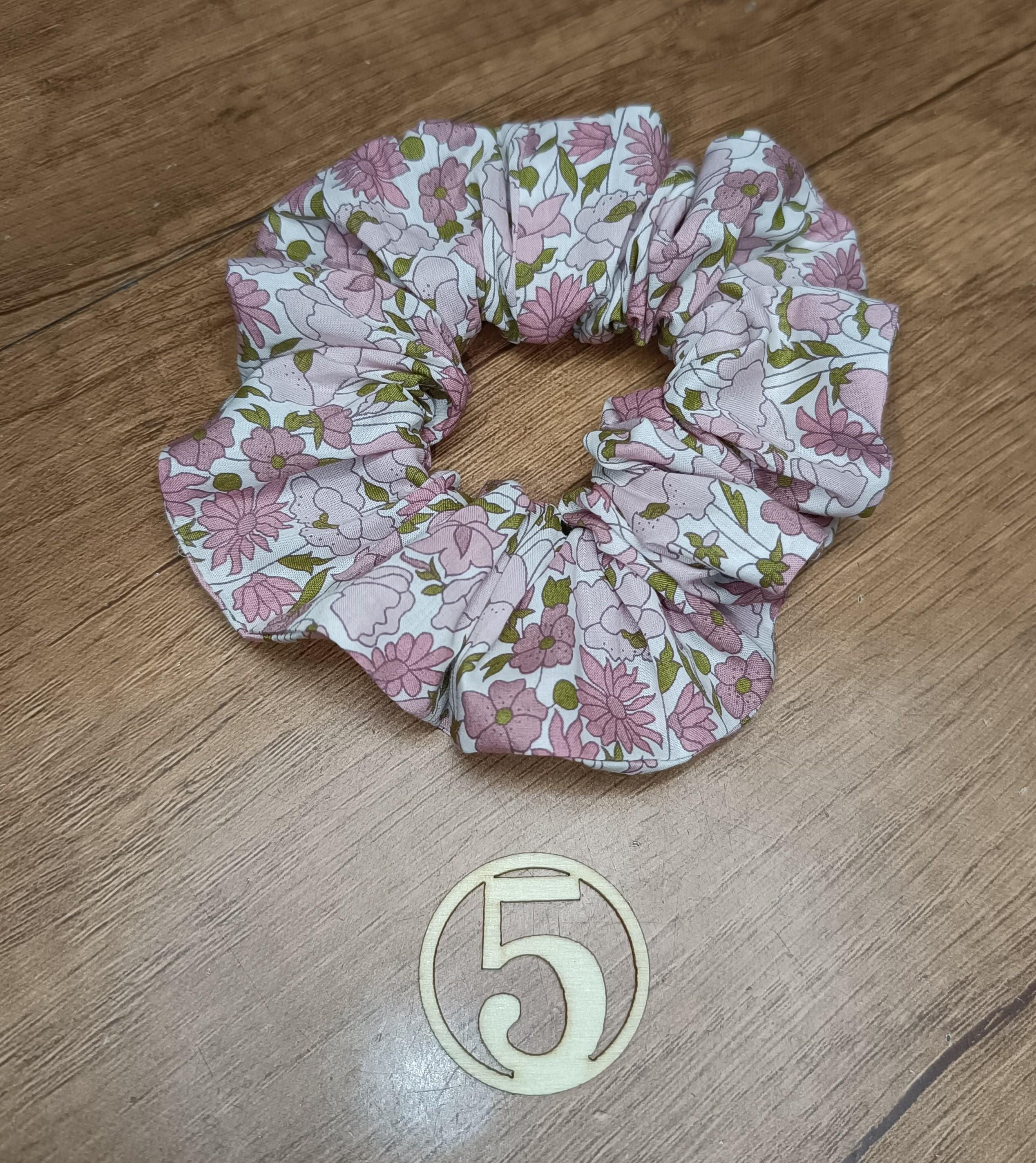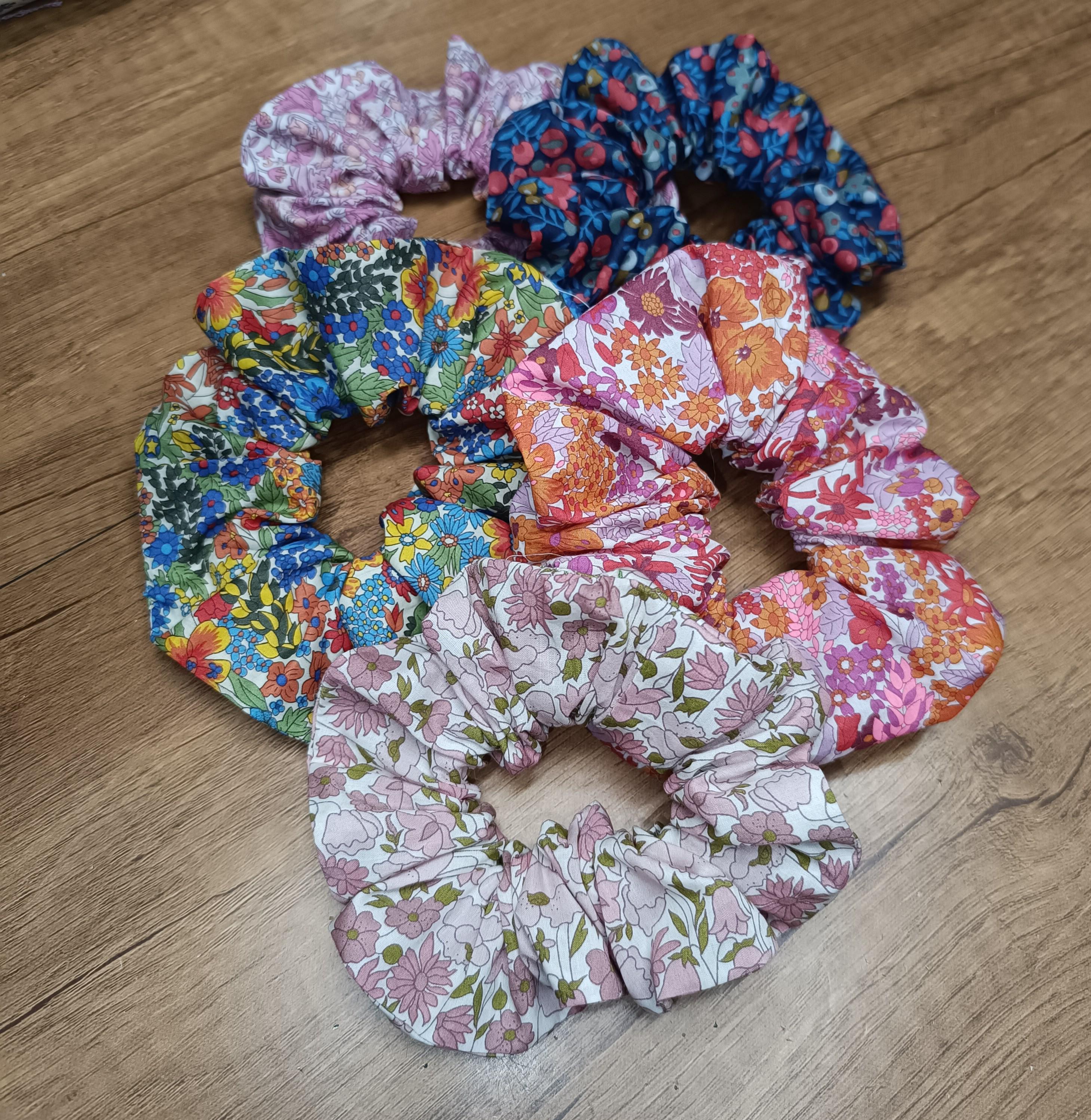 Adult or child scrunchie, elastic 2 to 3 turns depending on the thickness of the hair.