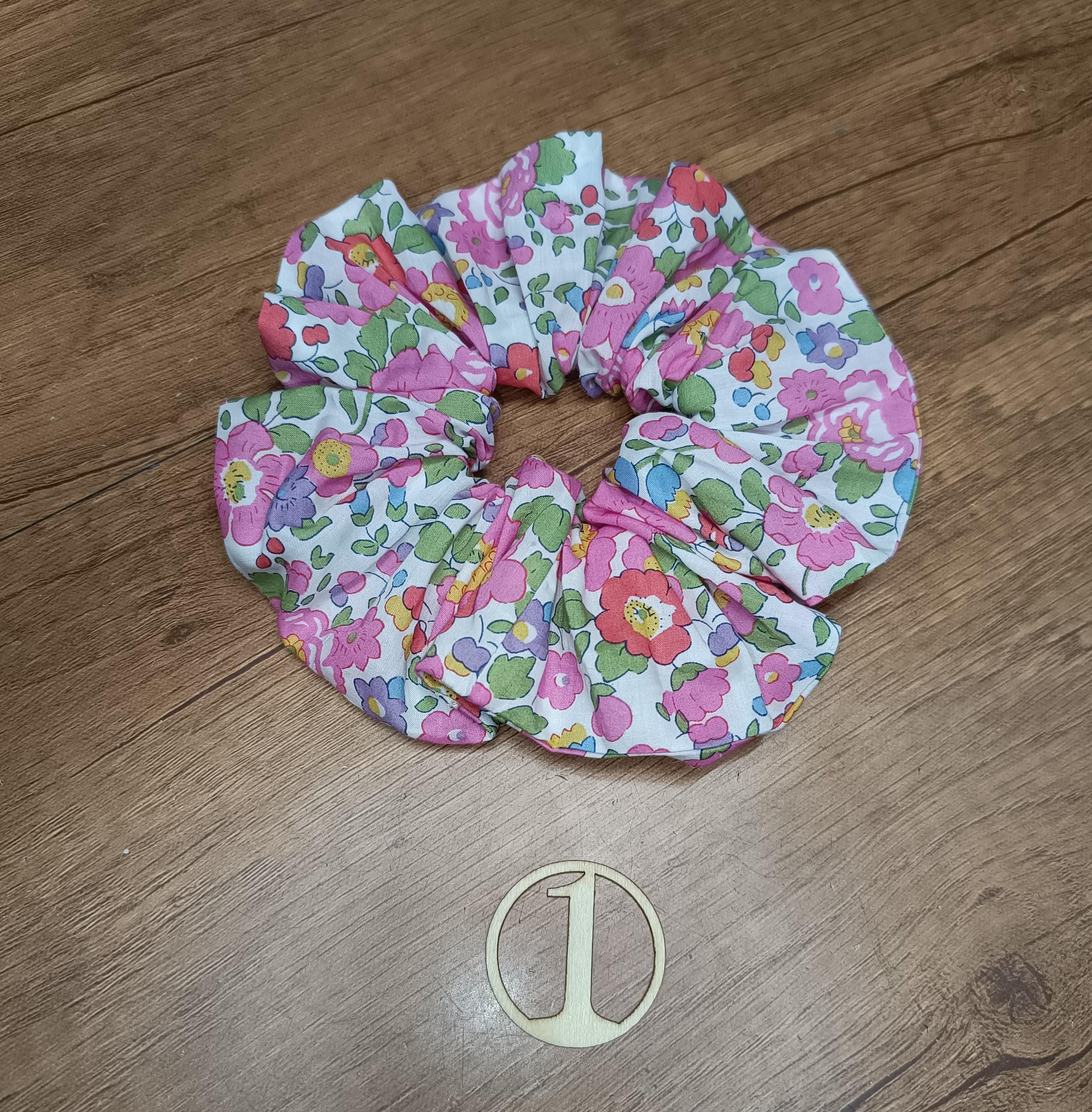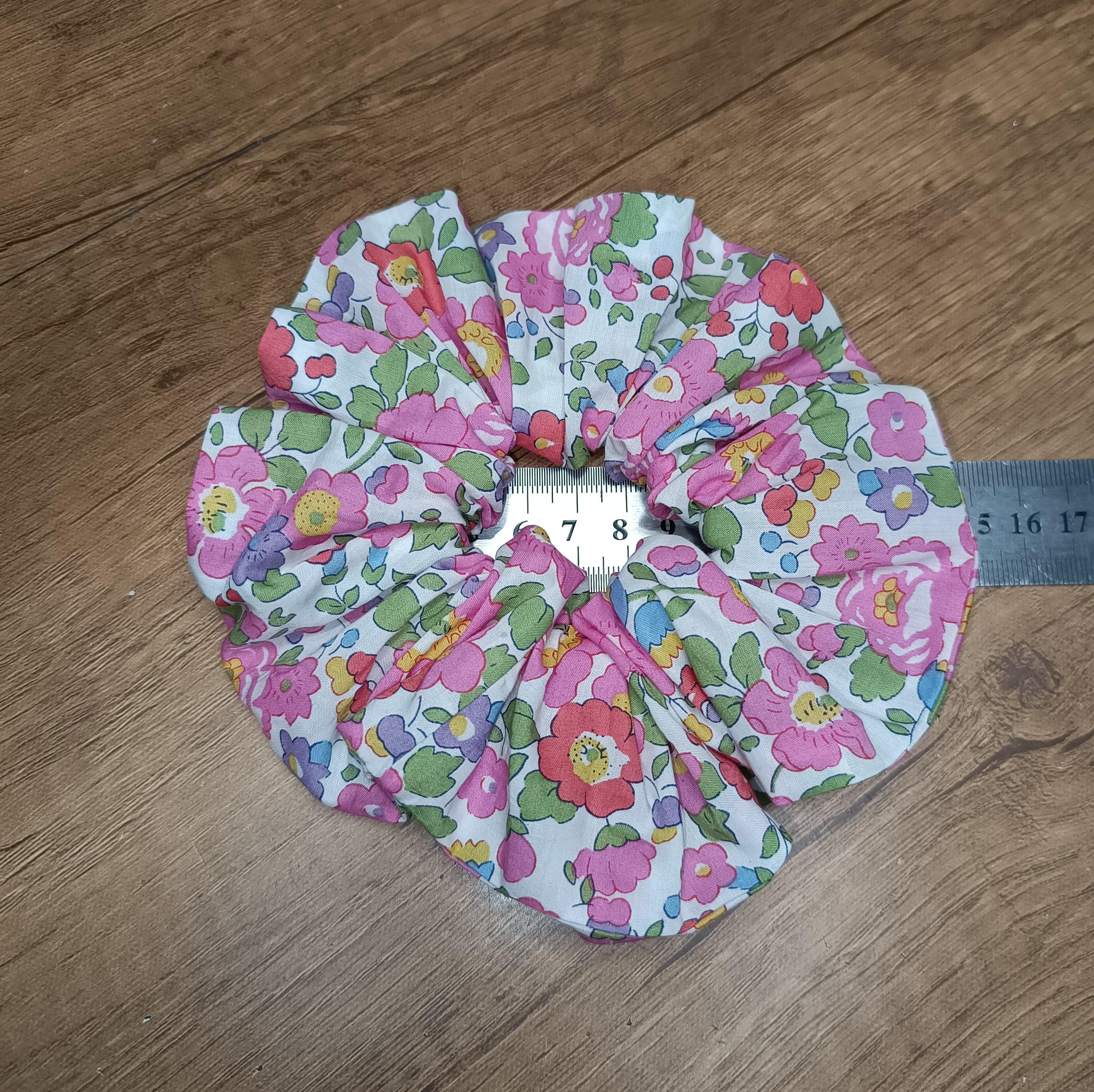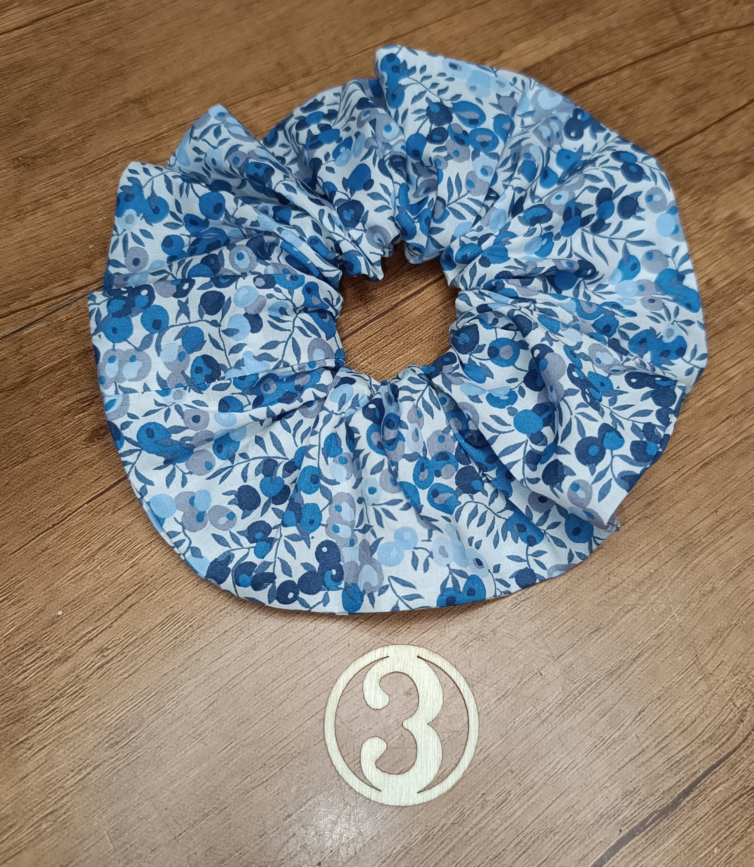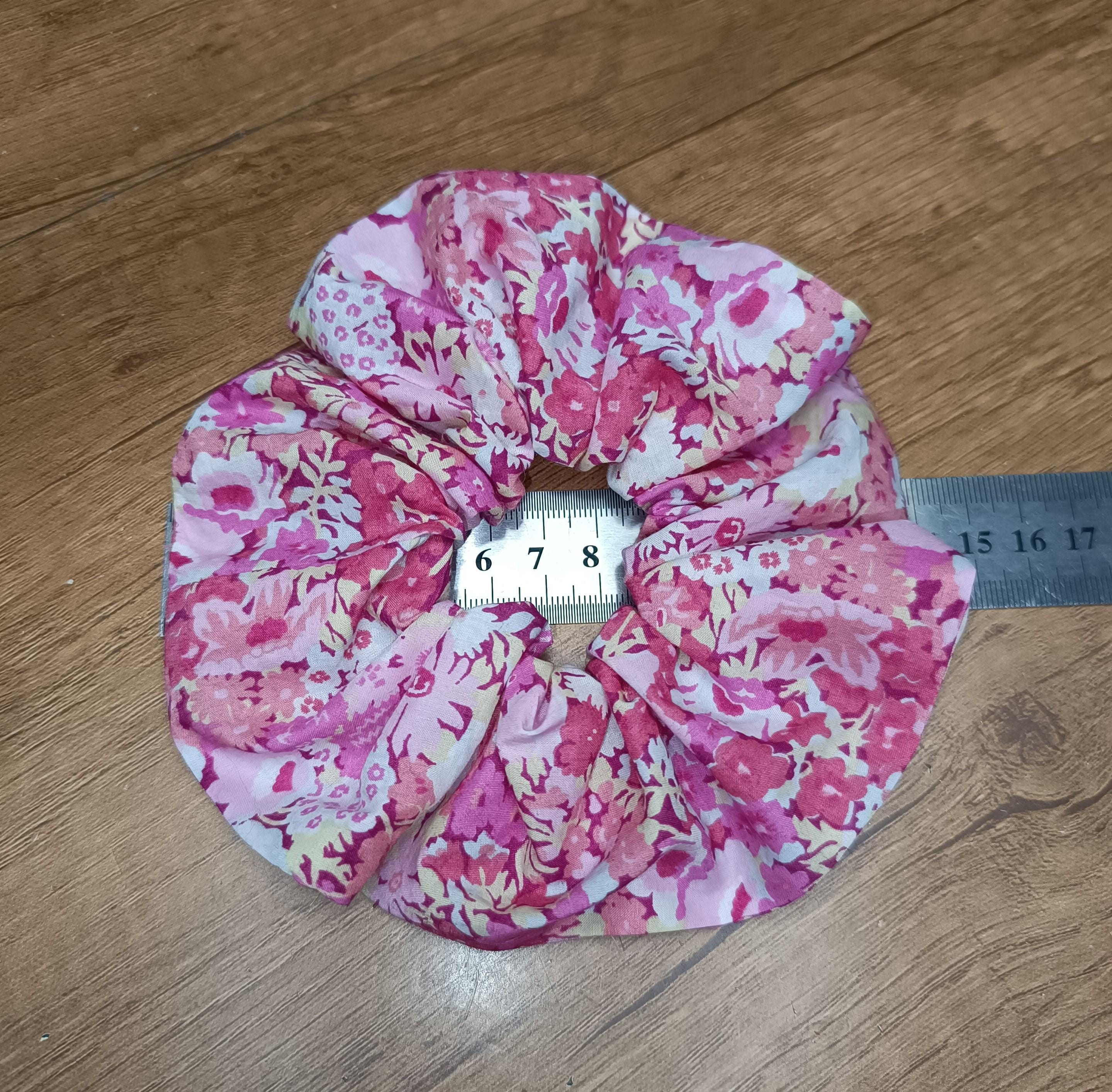 Large adult scrunchie, elastic 2 to 3 turns depending on hair thickness.