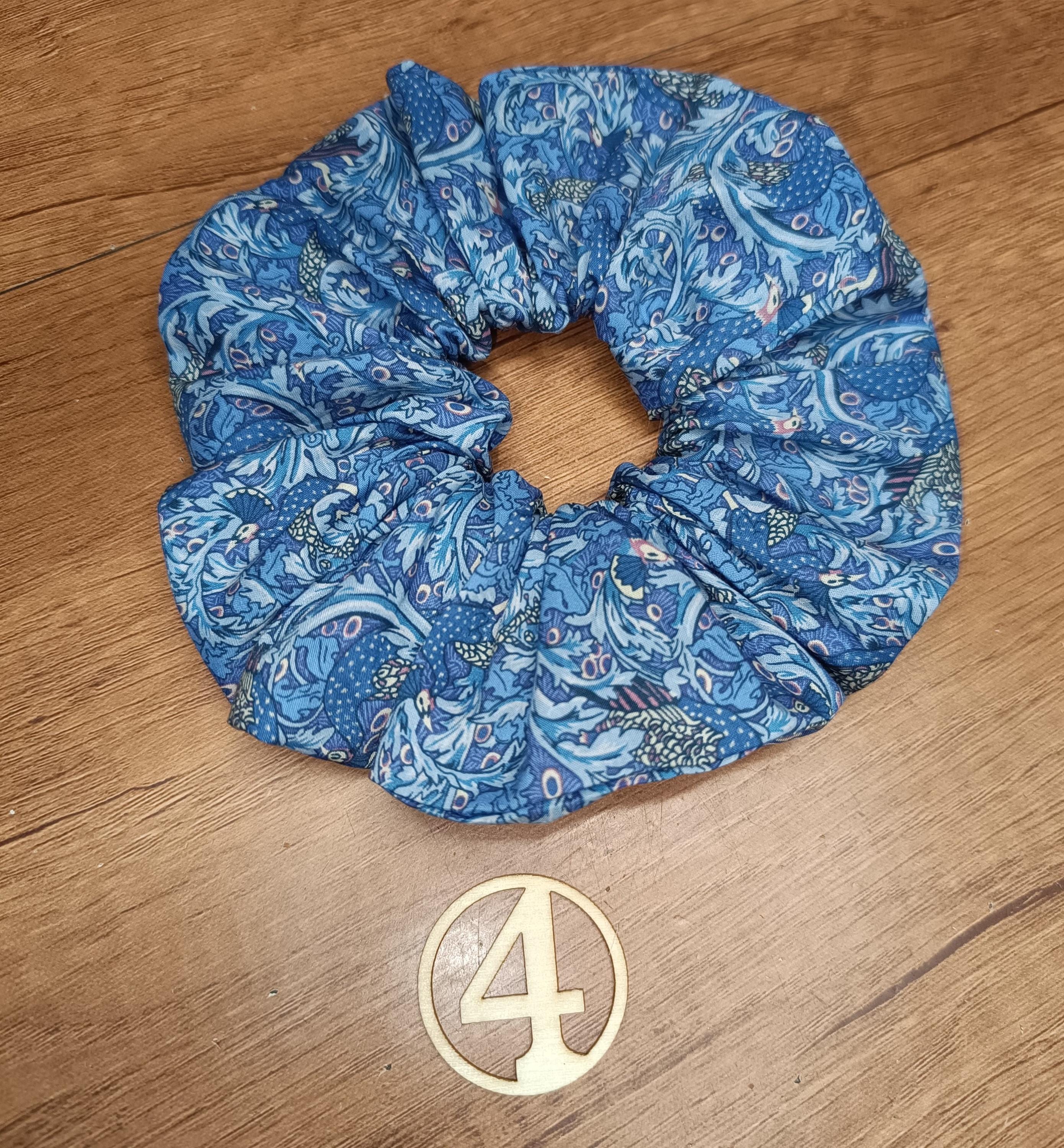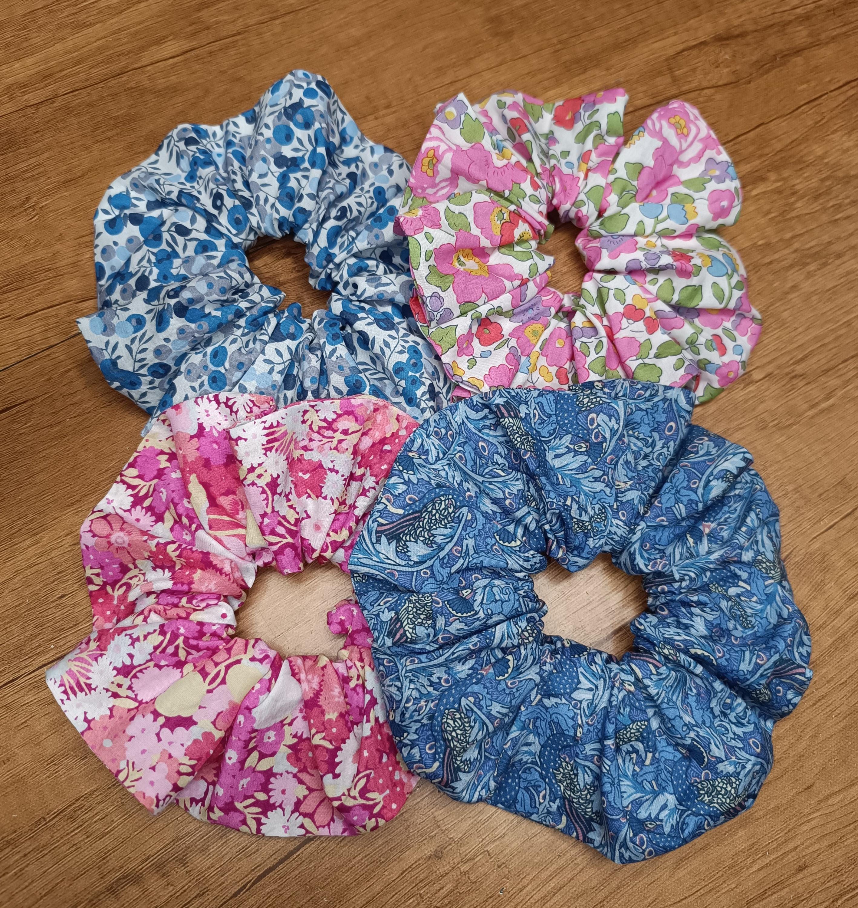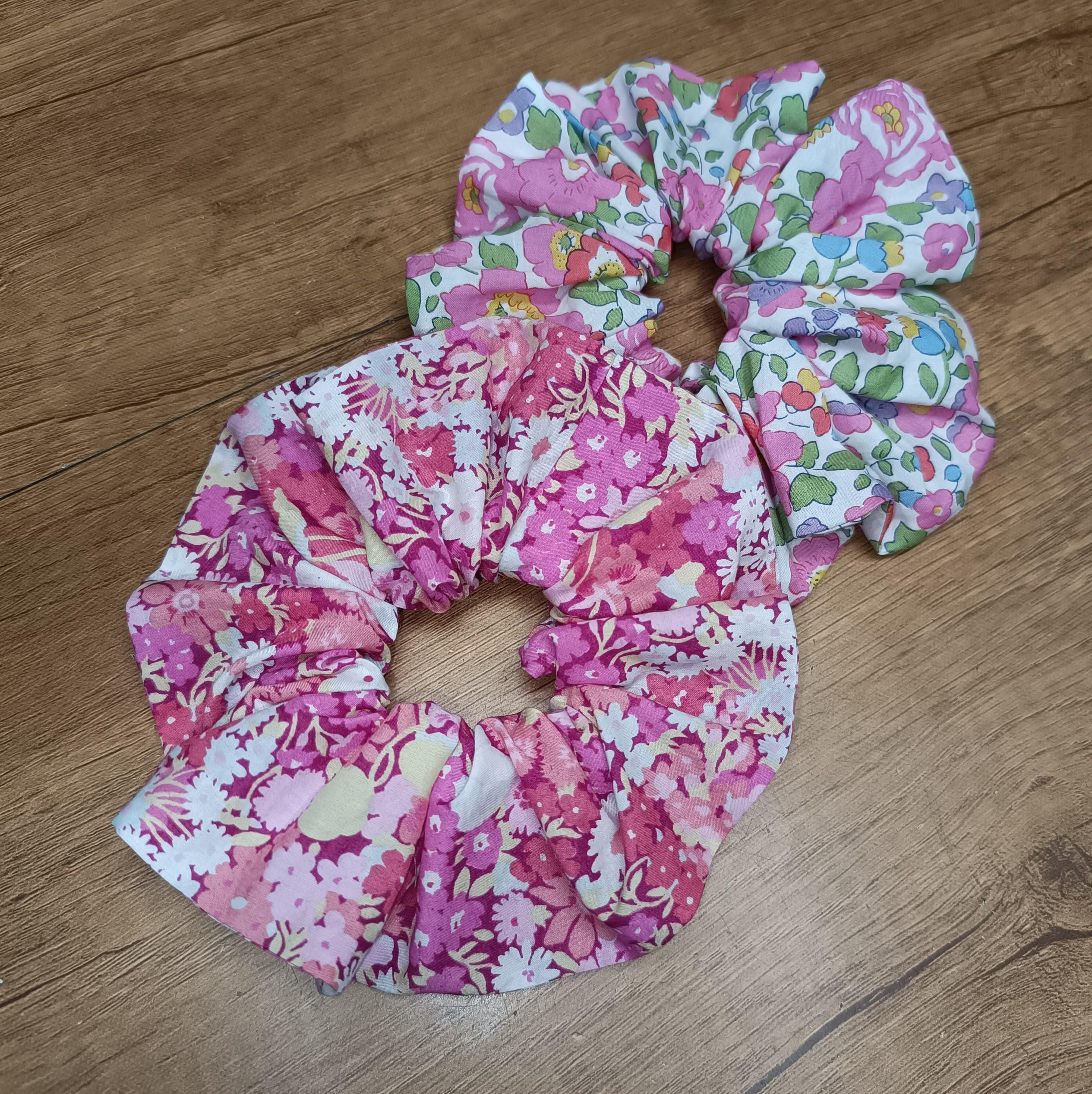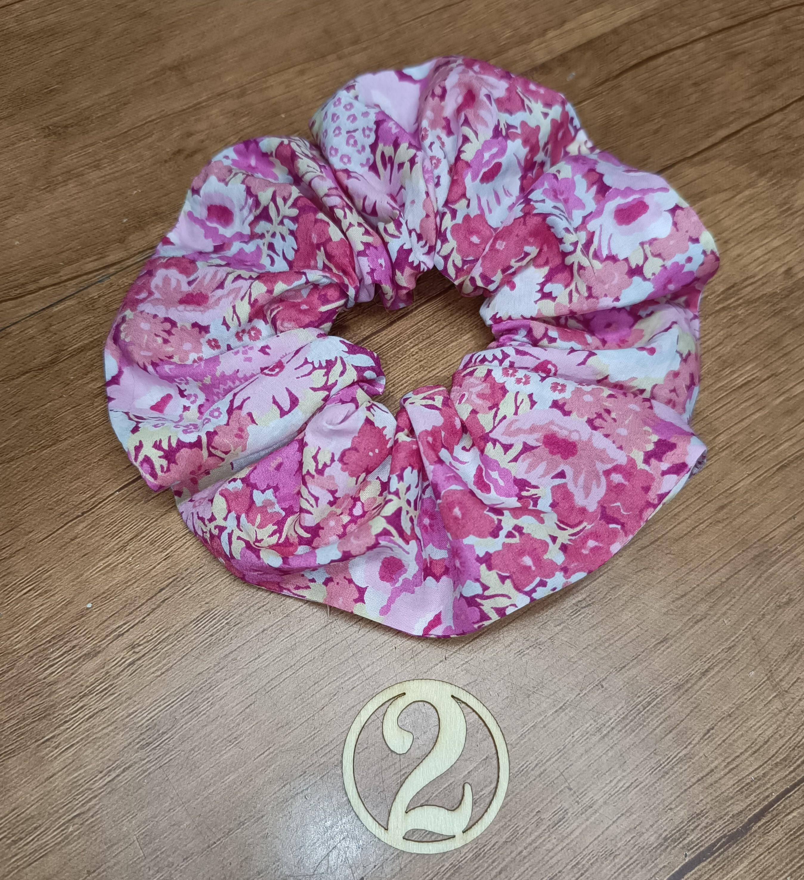 Large adult scrunchie, elastic 2 to 3 turns depending on hair thickness.