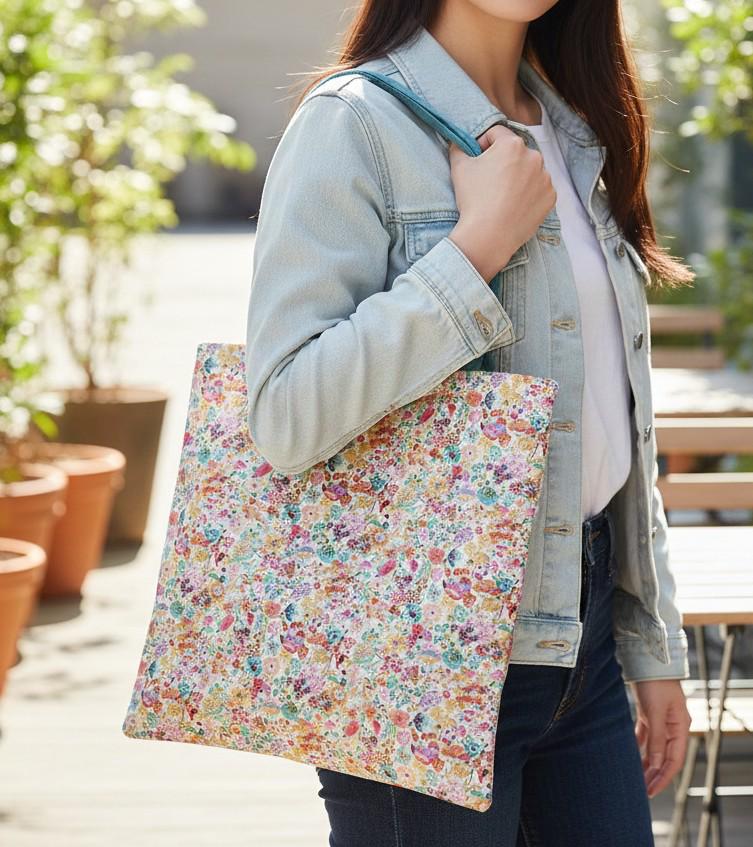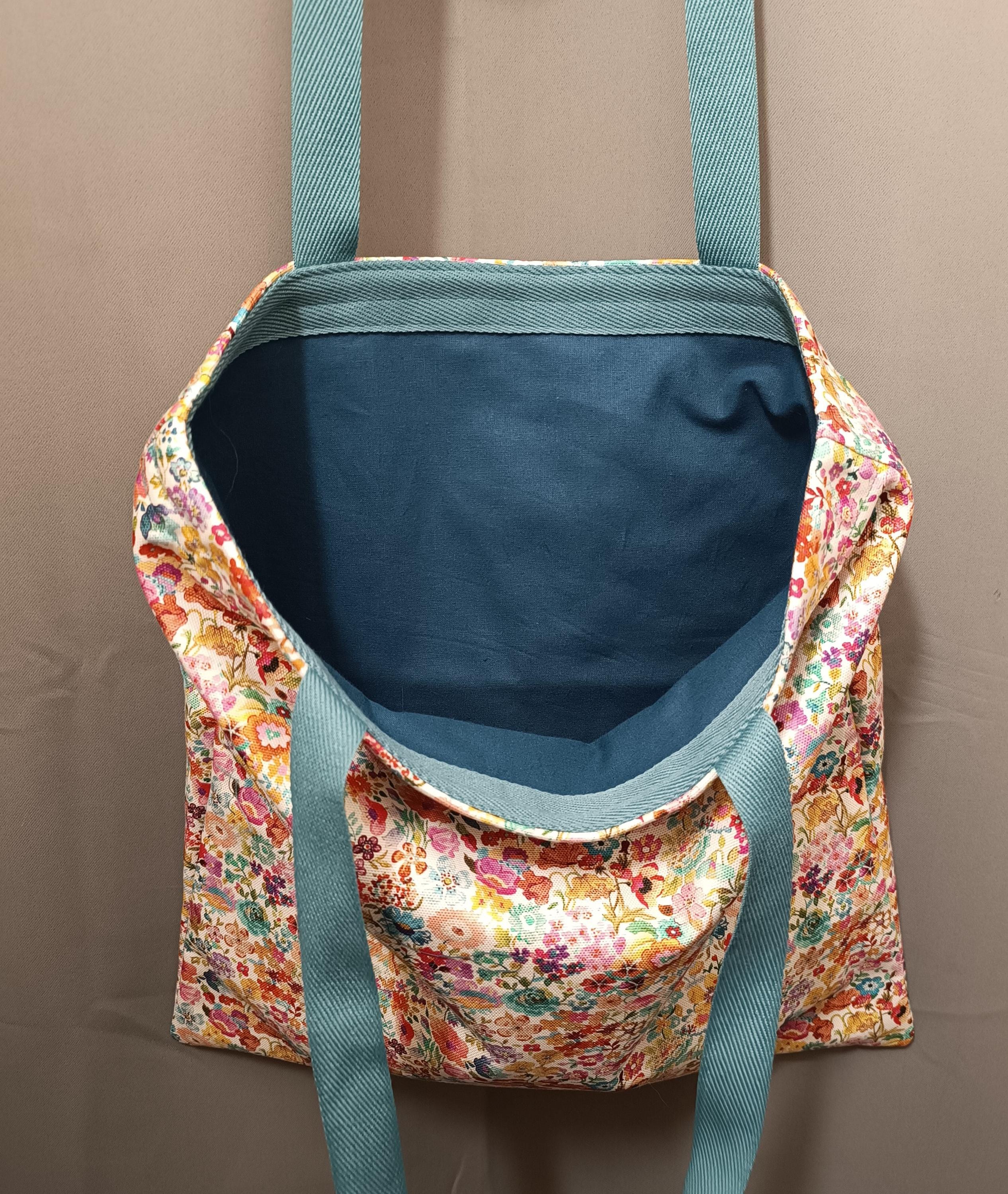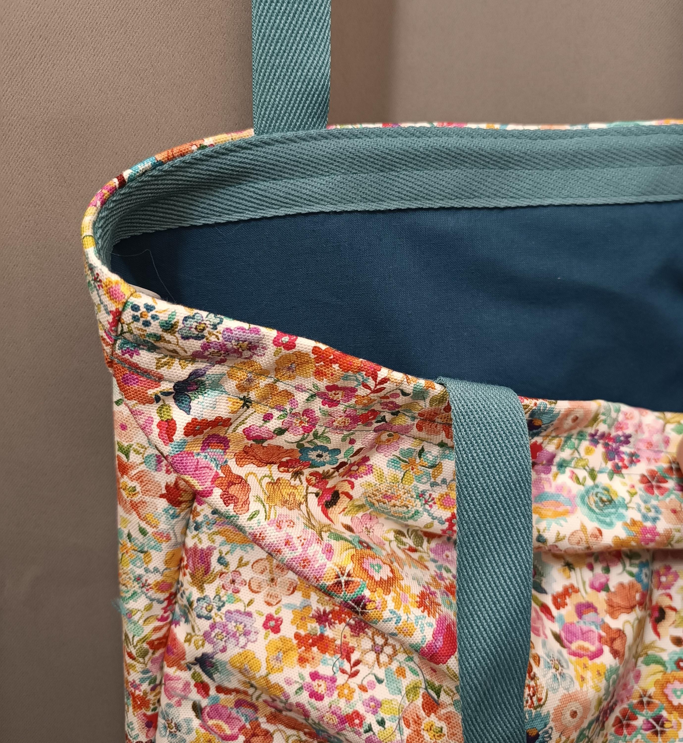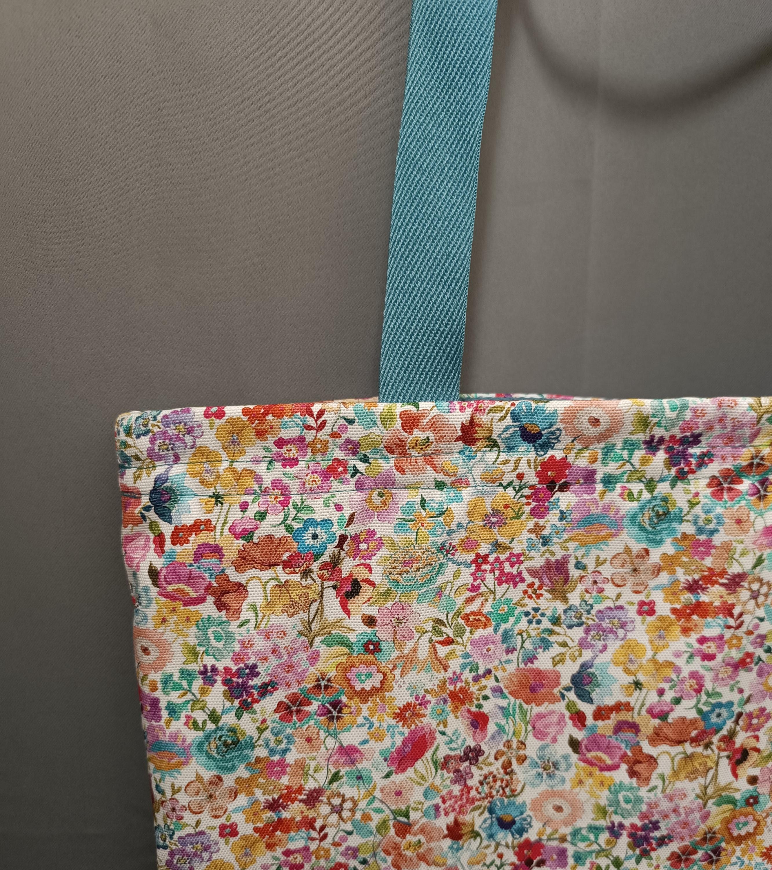 Exterior: Liberty Classic Meadow multicoloured canvas, 100% cotton, lined with plain pure cotton poplin, cotton handles. Reinforced top band for added strength.