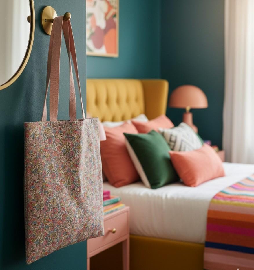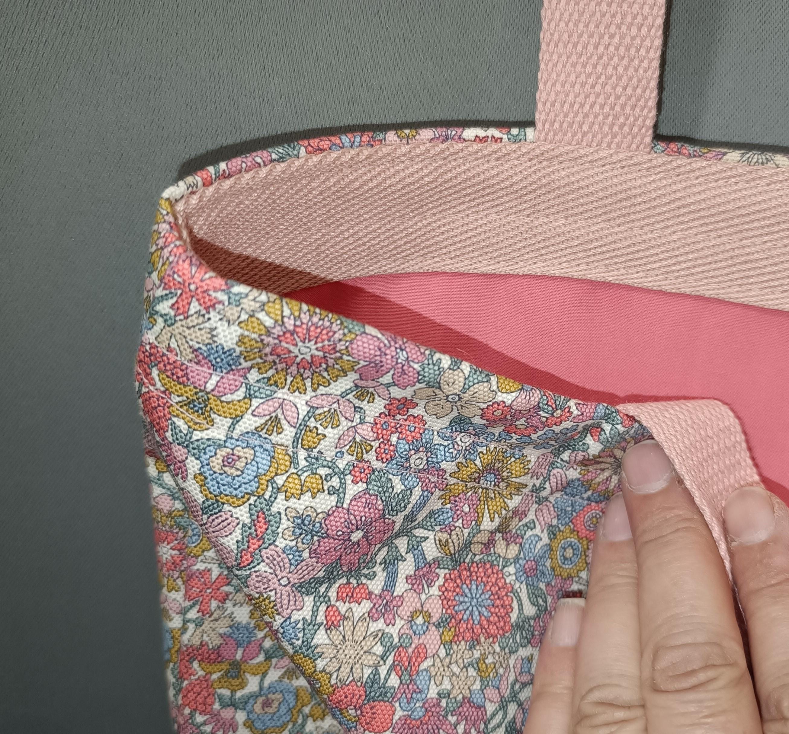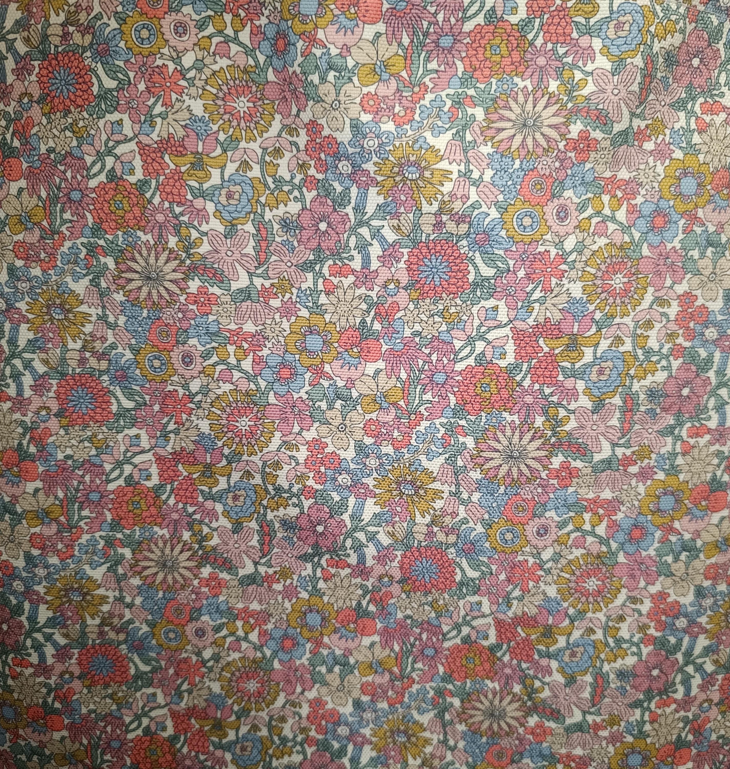 Exterior: Liberty June Blossom fabric in thick 100% cotton canvas, lined with plain pure cotton poplin, cotton handles. Reinforced top band for added strength.