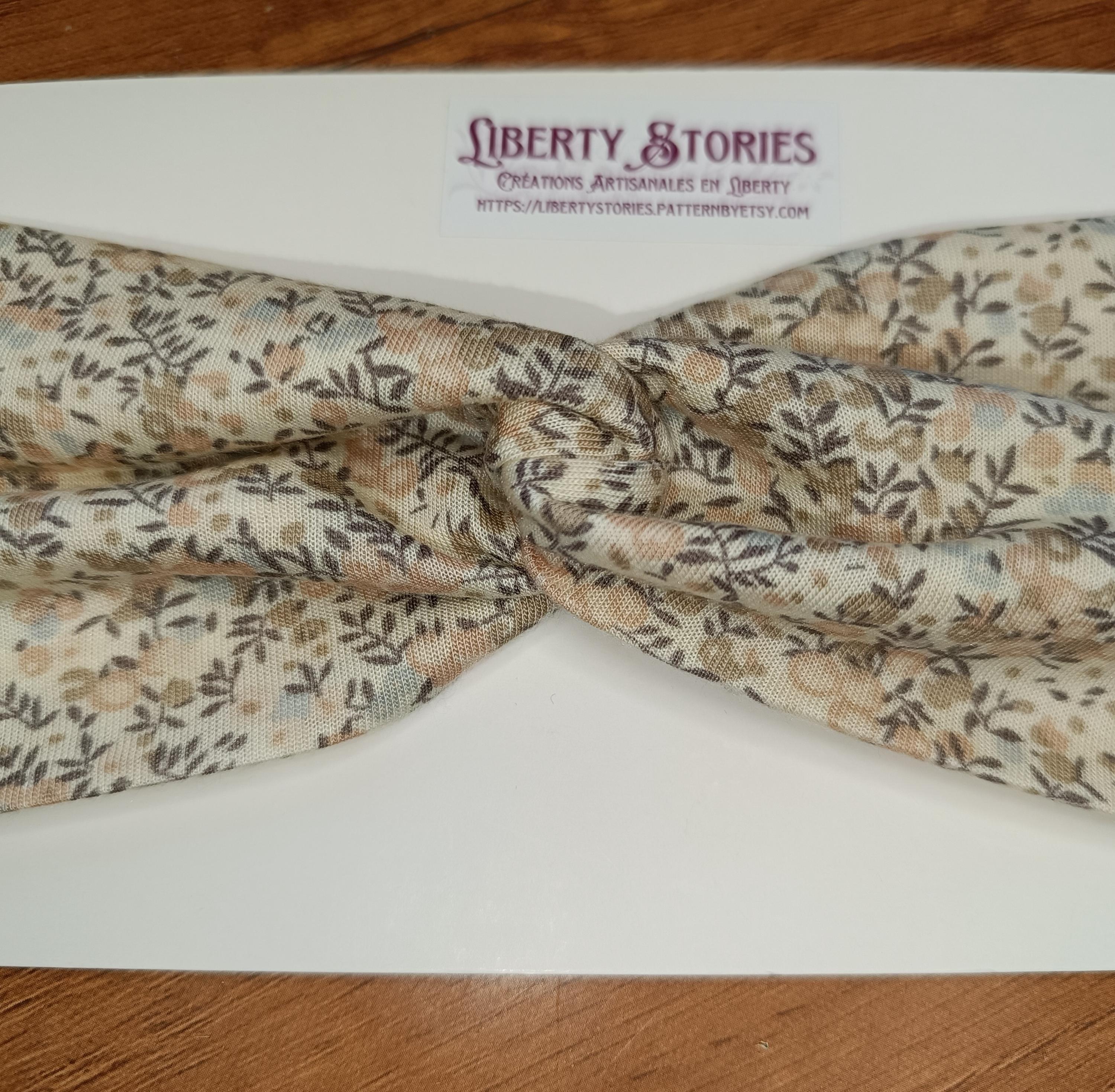 Liberty Wiltshire Bud cream jersey headband in soft, powdery colors.